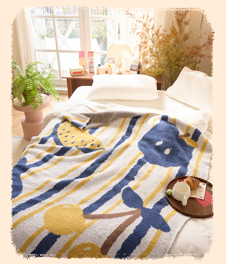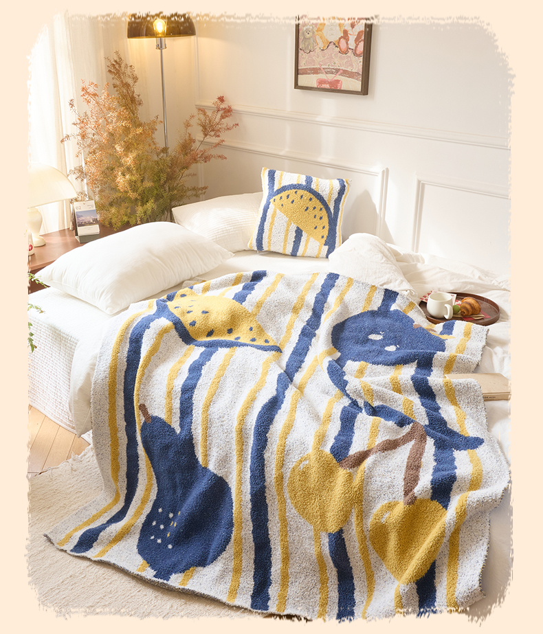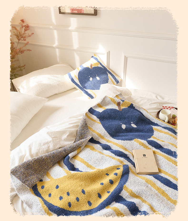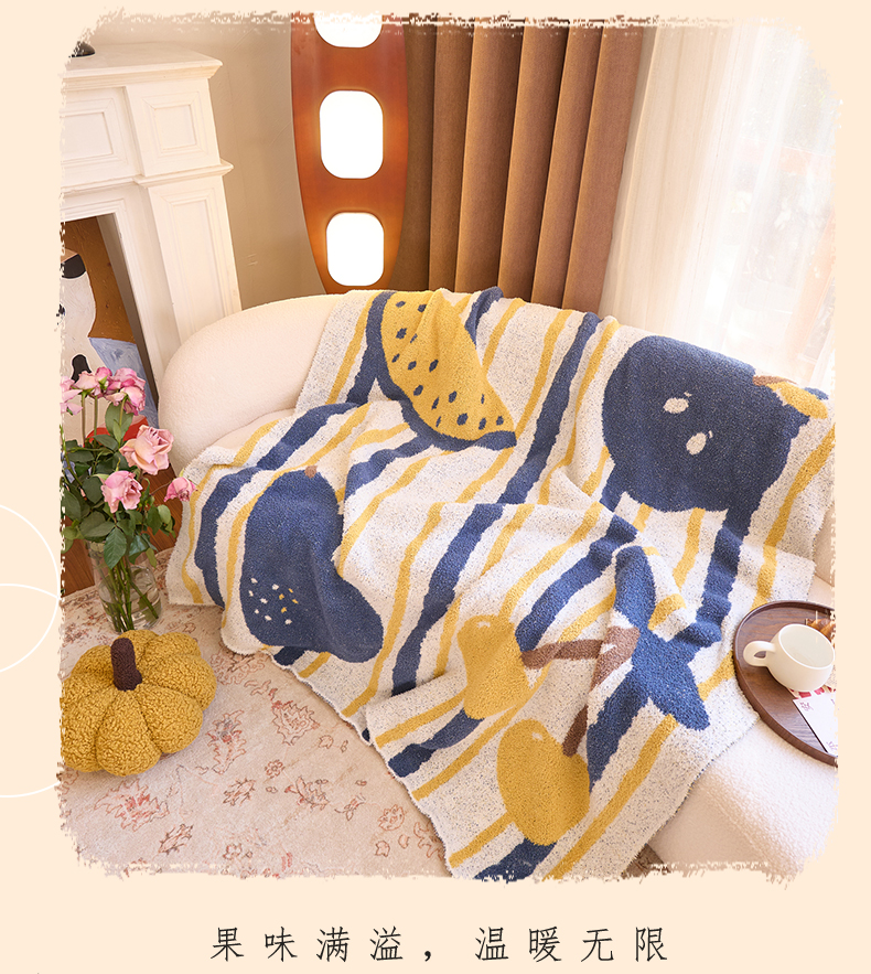 (总)暖绵绵家纺 2025新款A类半边绒清新水果盖毯-夏维希,夏维希-蓝色,夏维希-紫色