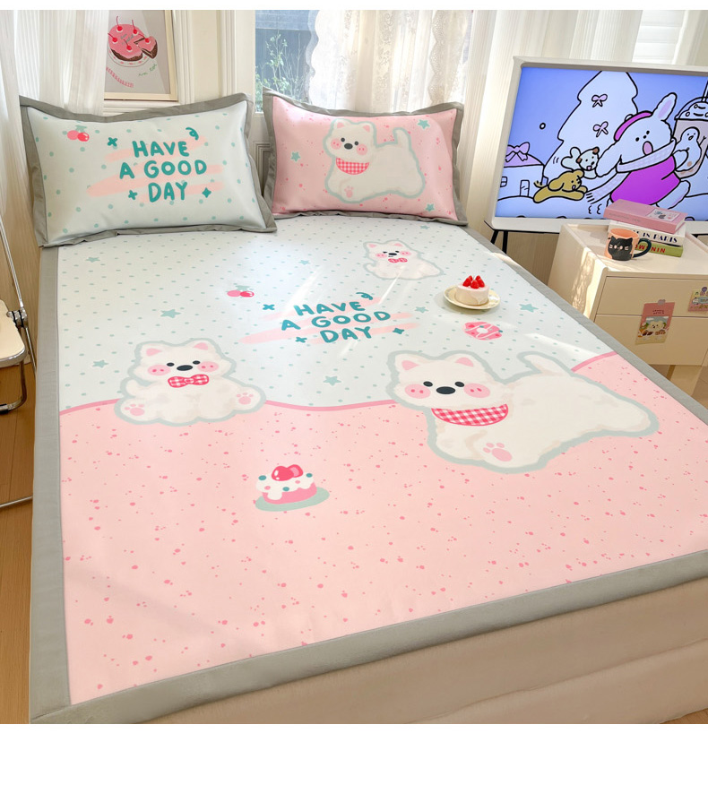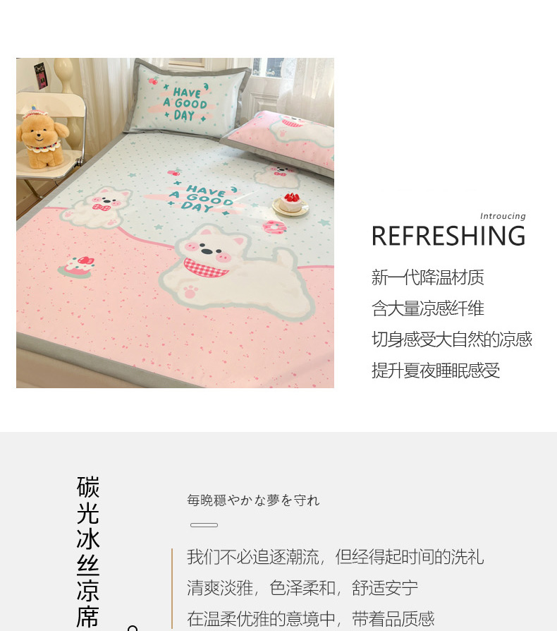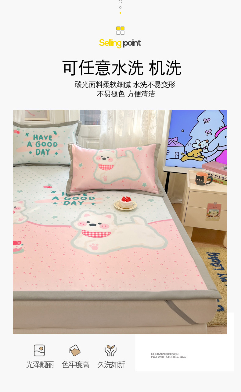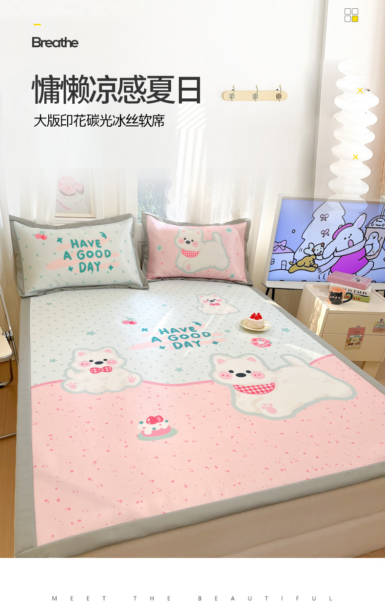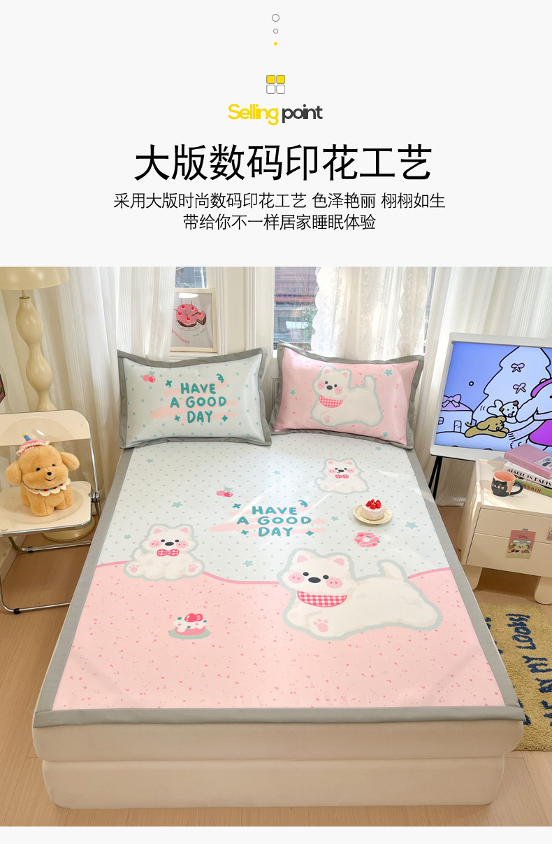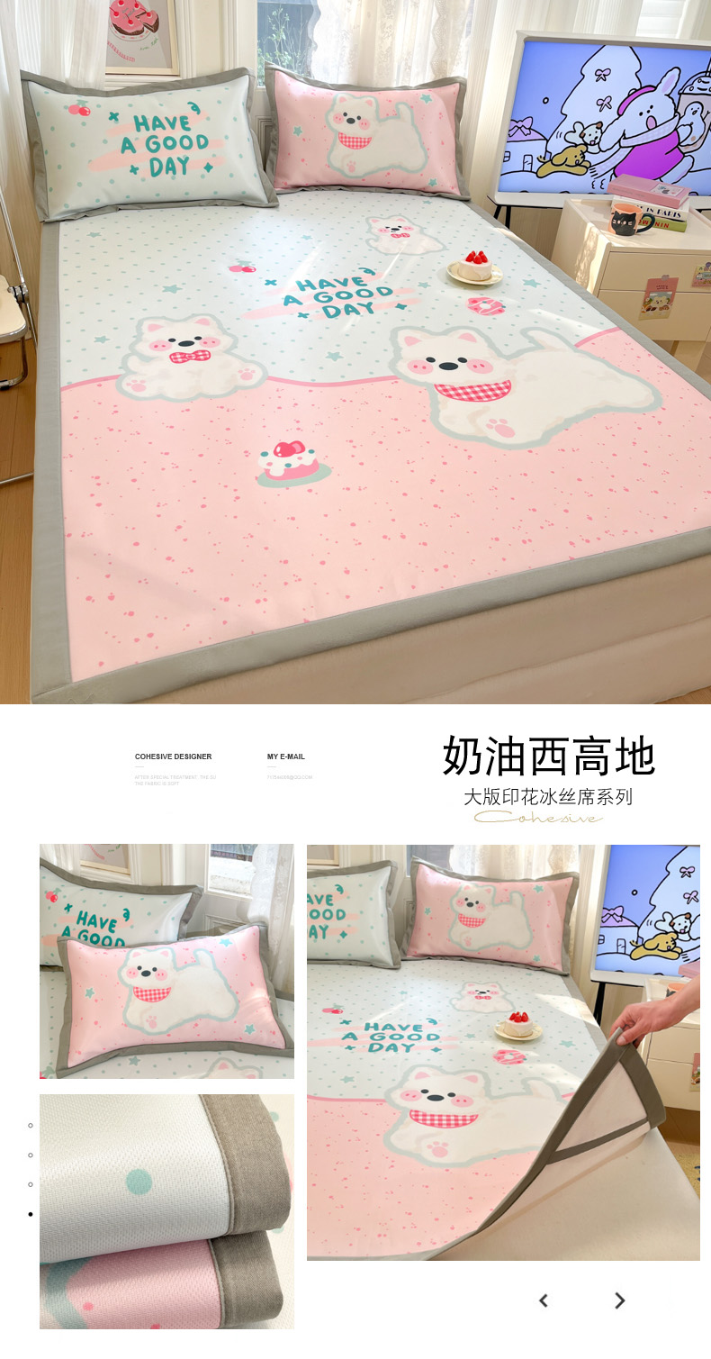 商品名称:柒月 2025新款大版数码印花碳光冰丝席 奶油西高地