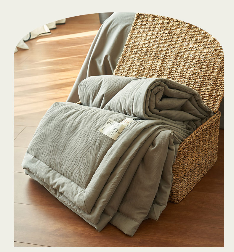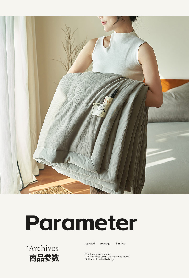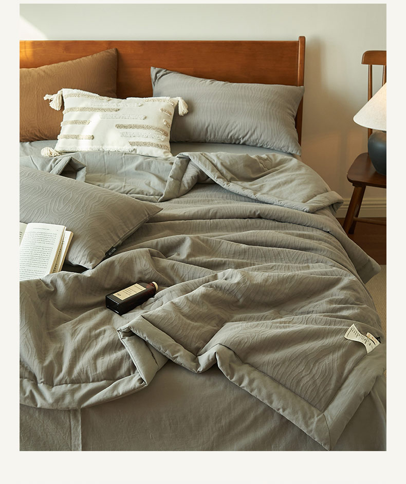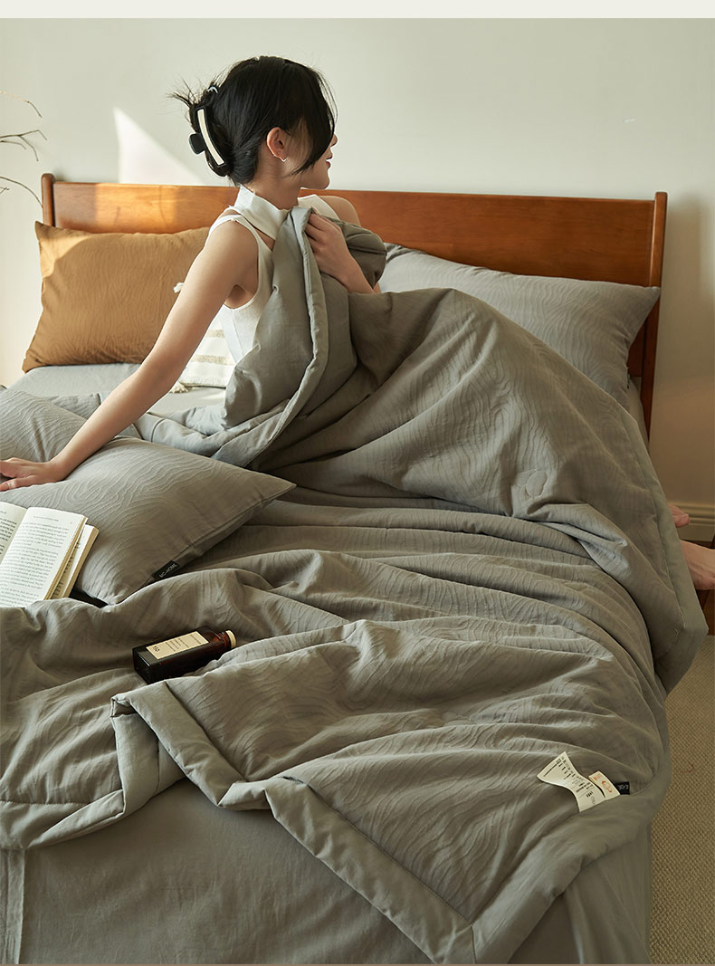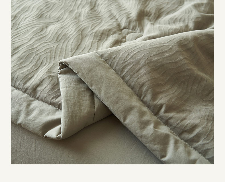 • 91家纺网 家纺一手货源 找家纺 寐绸家纺 2025新款纯棉水洗棉三层提花大豆纤维夏被四件套 三层纱树纹夏被-浅灰