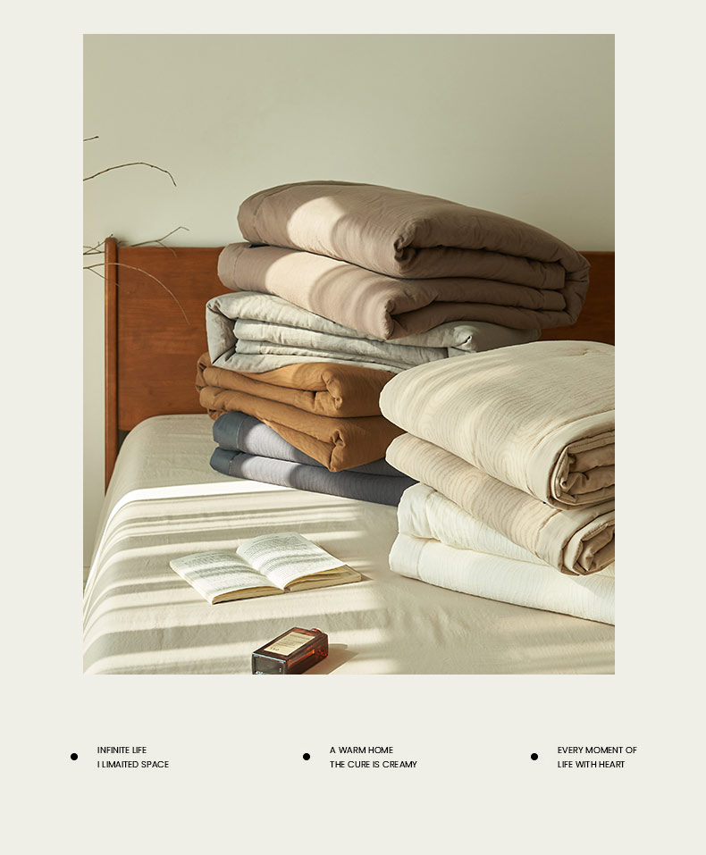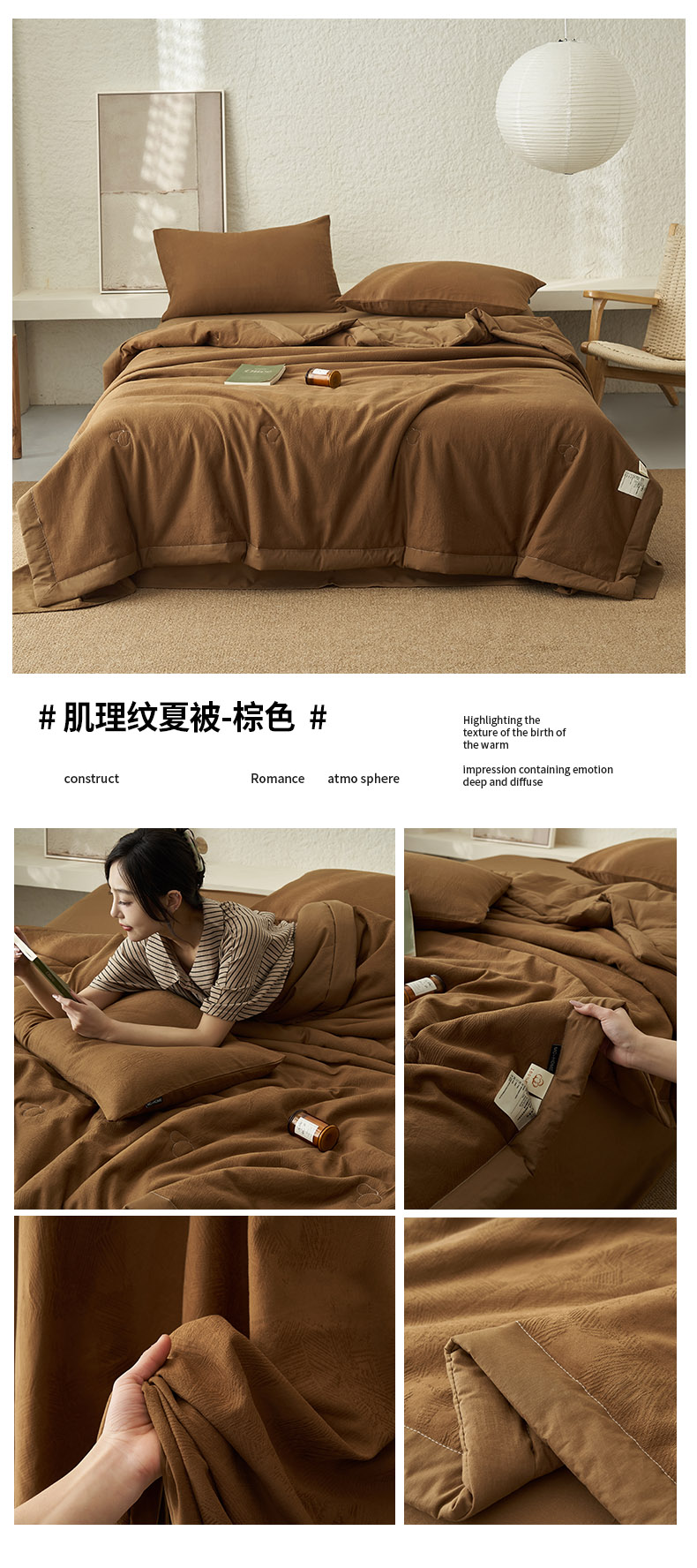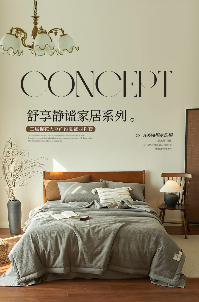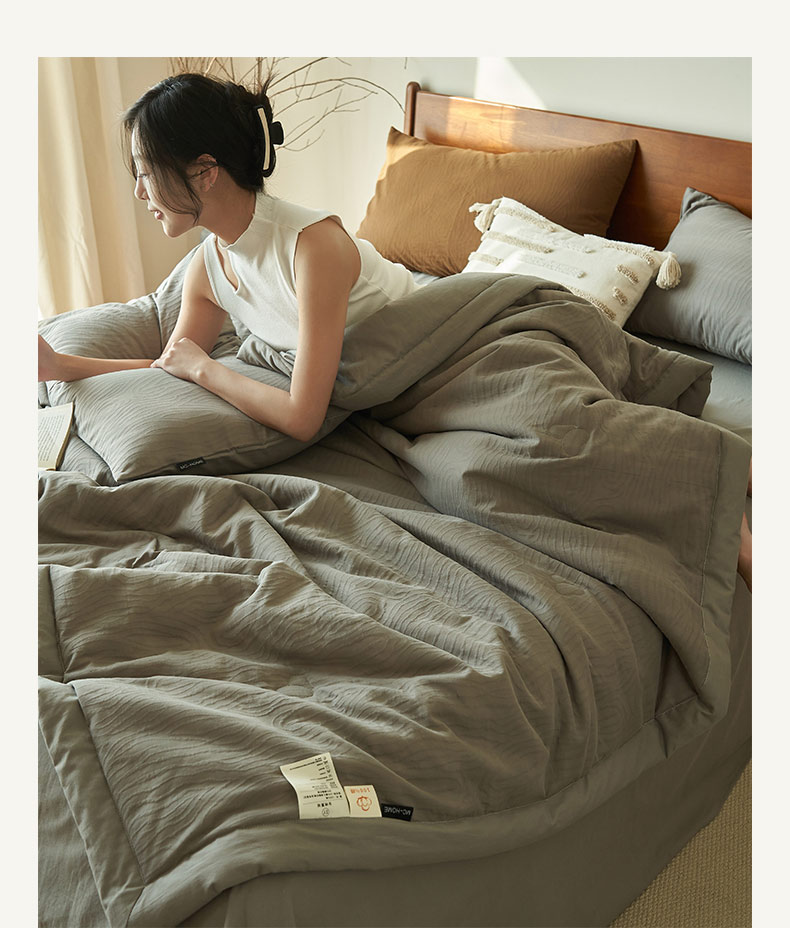 • 91家纺网 家纺一手货源 找家纺 寐绸家纺 2025新款纯棉水洗棉三层提花大豆纤维夏被四件套 三层纱树纹夏被-浅灰