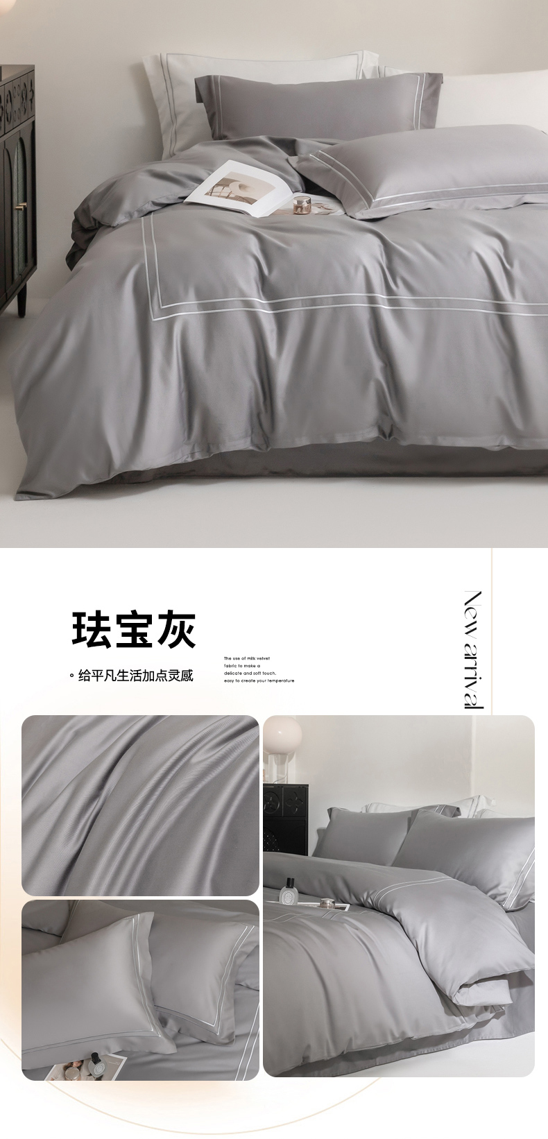 商品名称:121 2025新款长绒棉纯棉高支高密贡缎刺绣四件套 珐宝灰