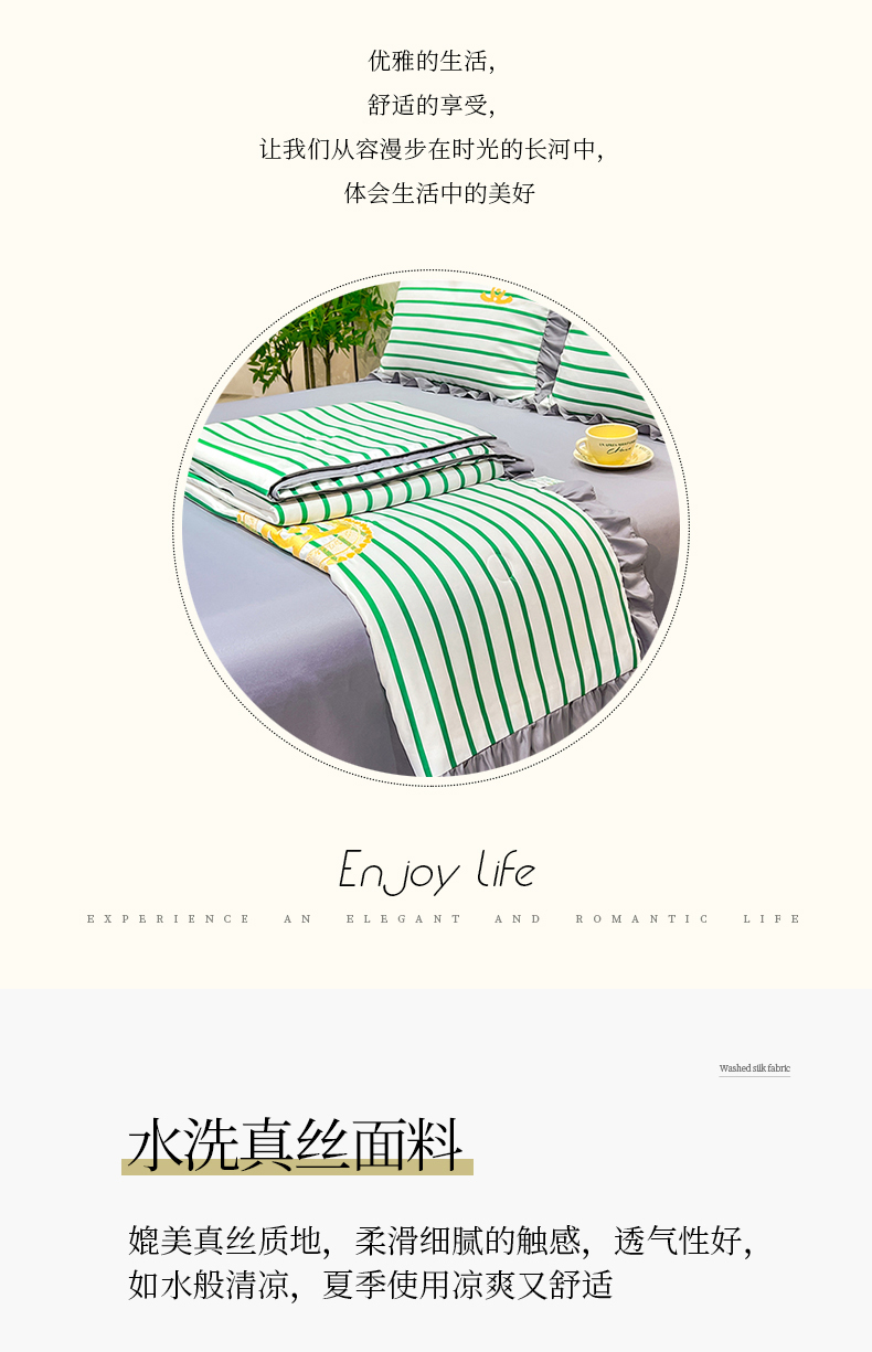 当前位置: 91家纺网 > 商品网购 > 床品套件 > 四件套 > 夏被四件套 > 经年 2025新款水洗真丝韩版夏被浅夏系列 浅夏-香草灰