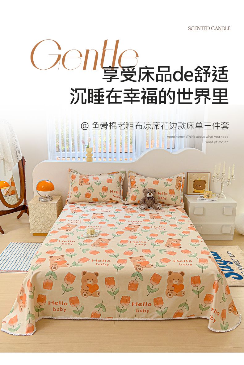 商品名称:梵克保罗 2025新款鱼骨棉老粗布凉席花边款床单三件套 保罗
