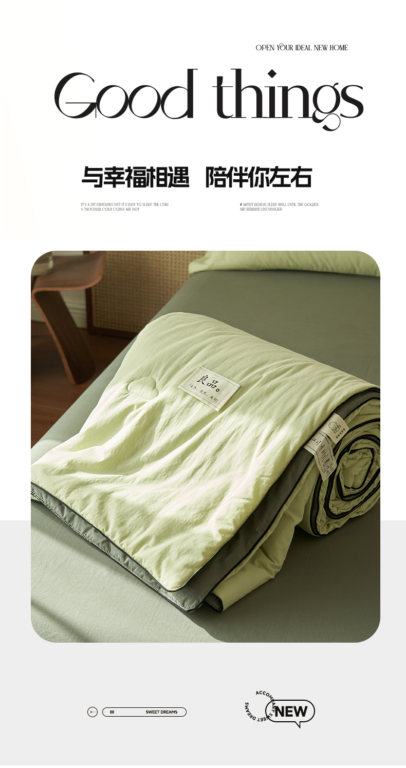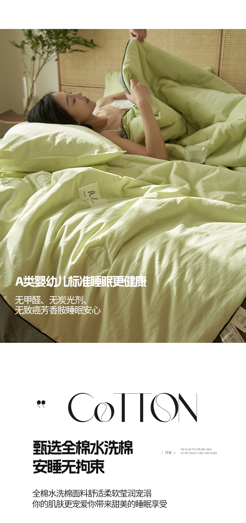 (总)寐绸家纺 2025新款纯棉水洗棉撞色嵌绳大豆纤维夏被四件套