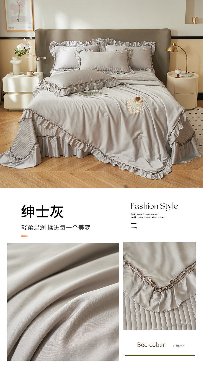 恒爱家纺2025新款莫代尔柔情似水多功能夏被床盖四件套 绅士灰