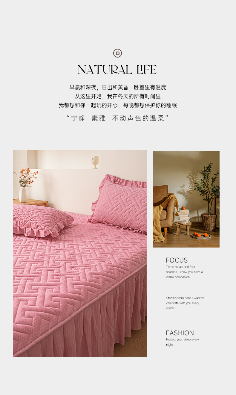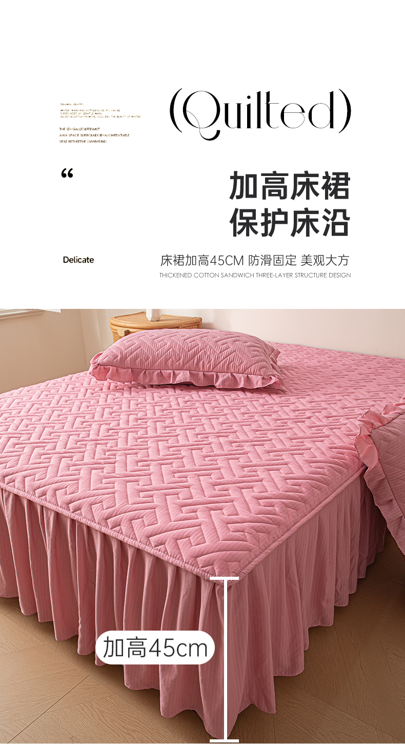 (总)屹成家纺2025新款水晶绒夹棉绗缝蕾丝床裙三件套(塞纳河畔)床裙单件起售价不低于105元,大红,豆沙,翡翠绿,粉玉,橄榄绿,蔚蓝,银灰