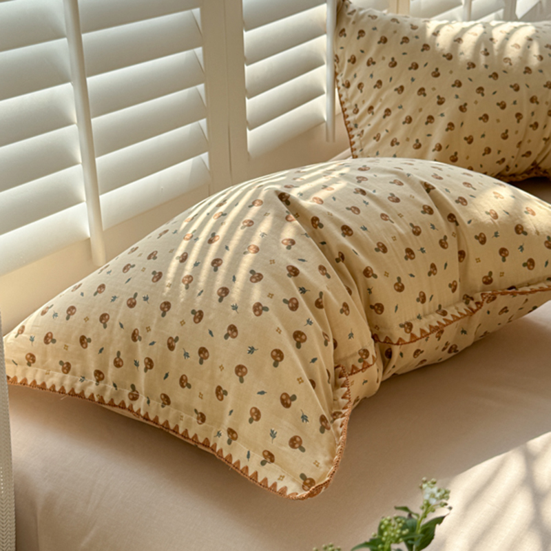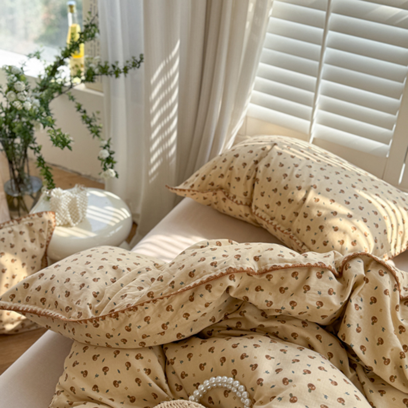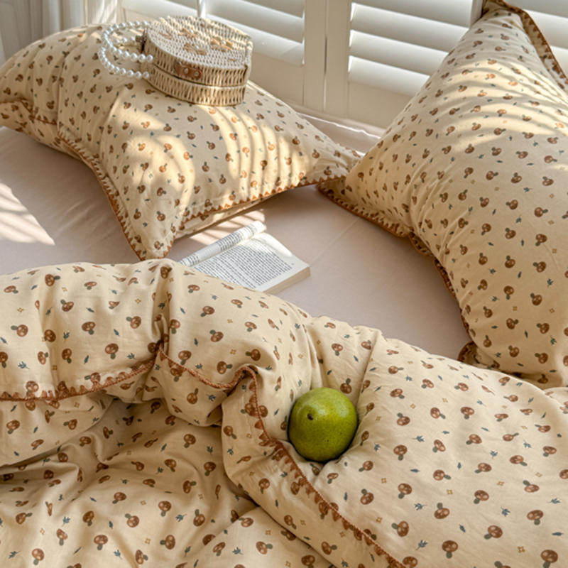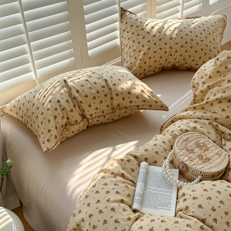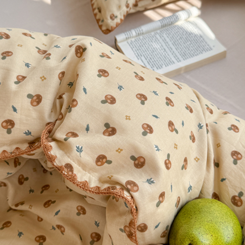 当前位置: 91家纺网 > 商品网购 > 床品套件 > 四件套 > 全棉普通四件套 > 金丝鸟家纺 2025新款全棉双层纱贝壳边四件套花卉系列 蘑菇园