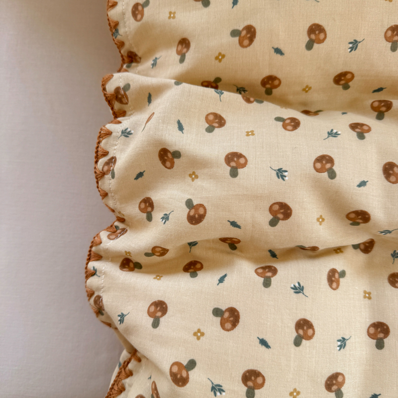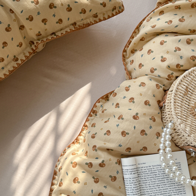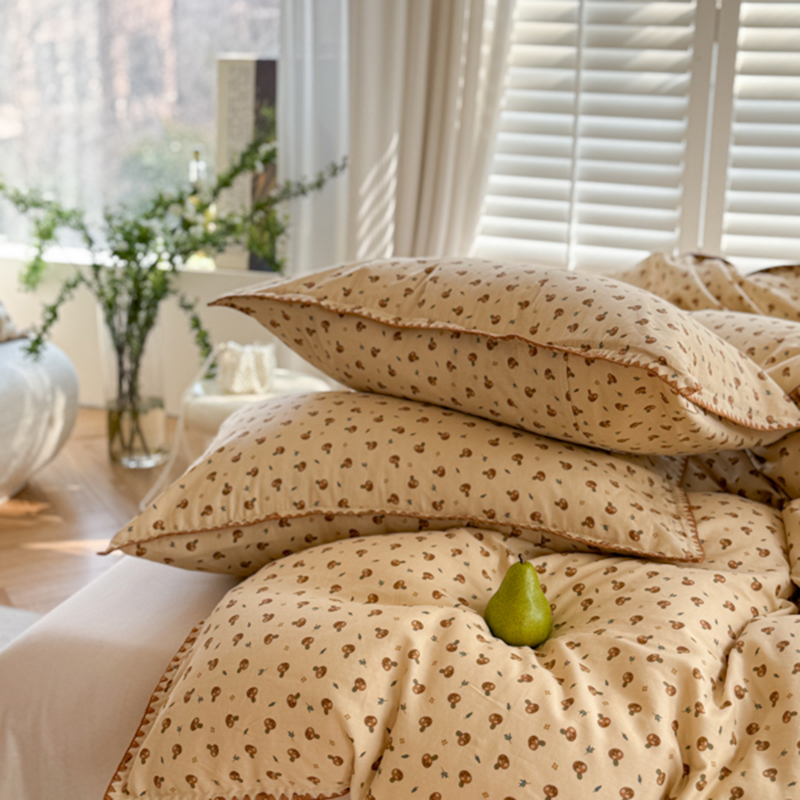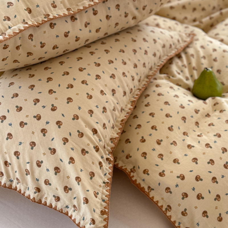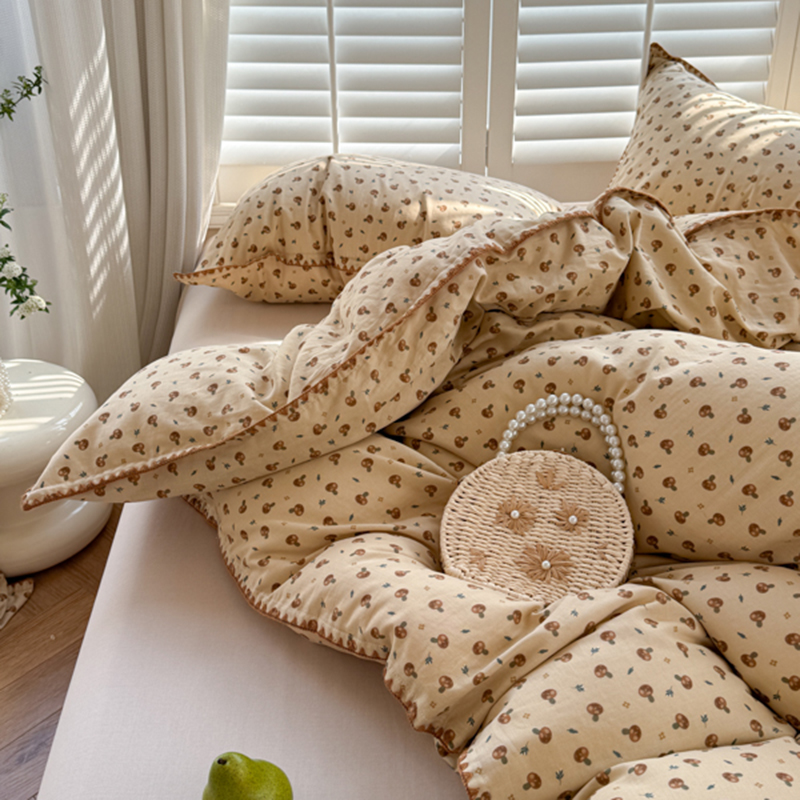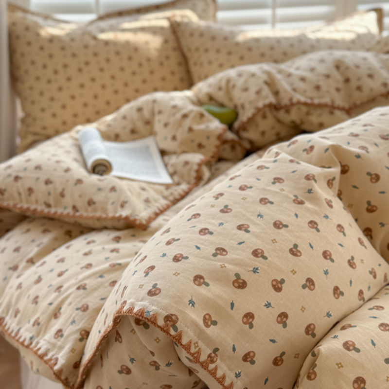 当前位置: 91家纺网 > 商品网购 > 床品套件 > 四件套 > 全棉普通四件套 > 金丝鸟家纺 2025新款全棉双层纱贝壳边四件套花卉系列 蘑菇园