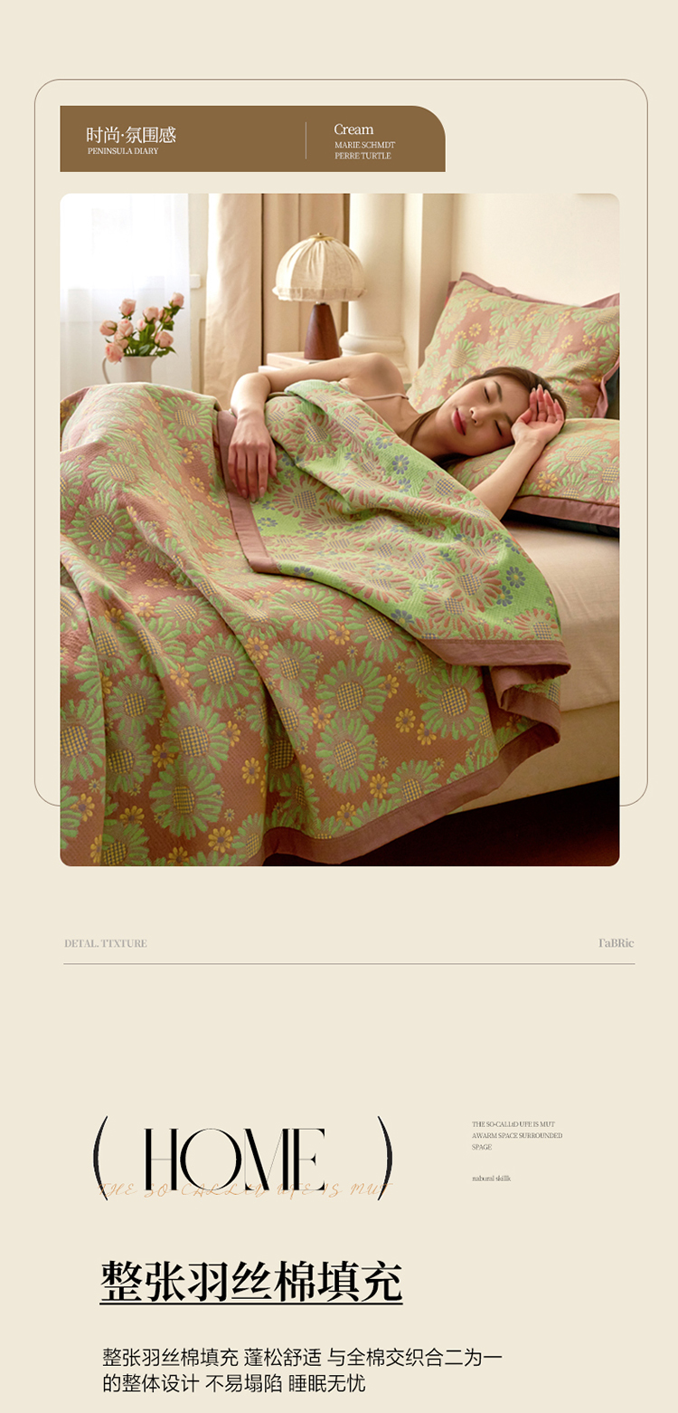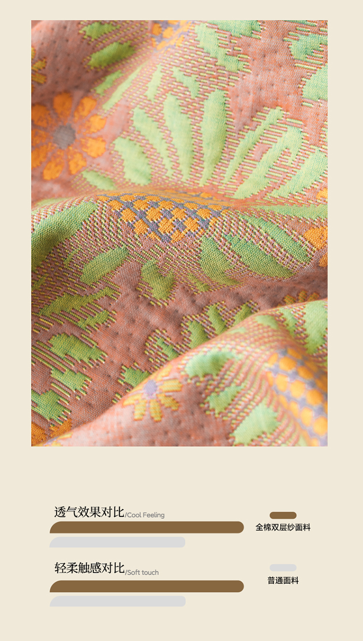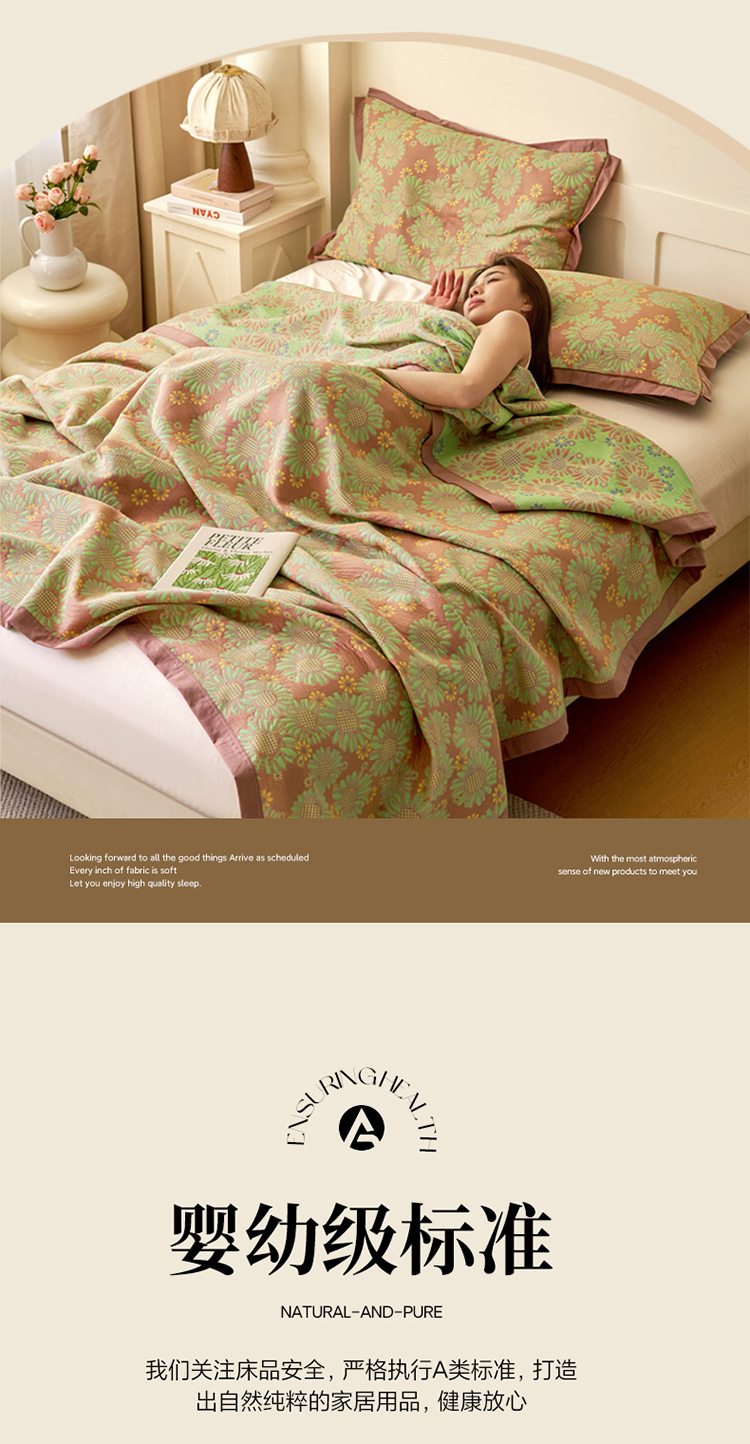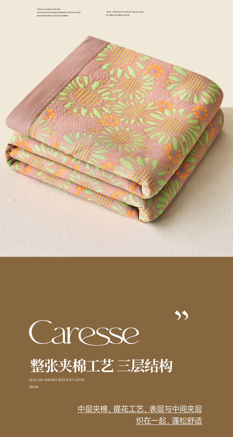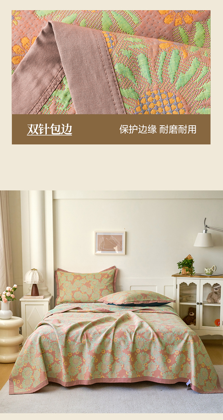 • 91家纺网 家纺一手货源 找家纺 棠薇家纺 2025新款全棉彩纱双层纱夏被三层纱多功能毛巾被纱布毯细纱床盖 葵园豆沙