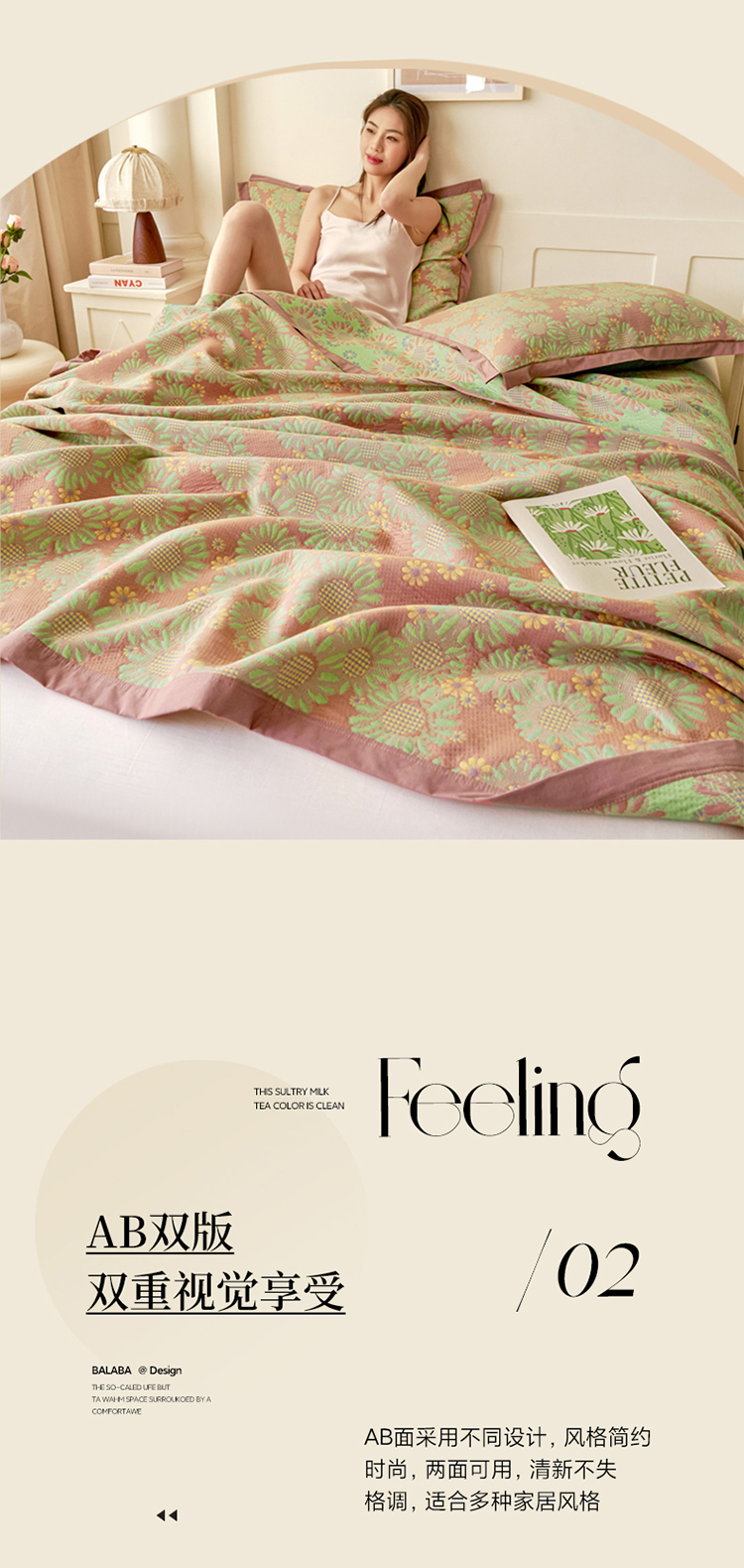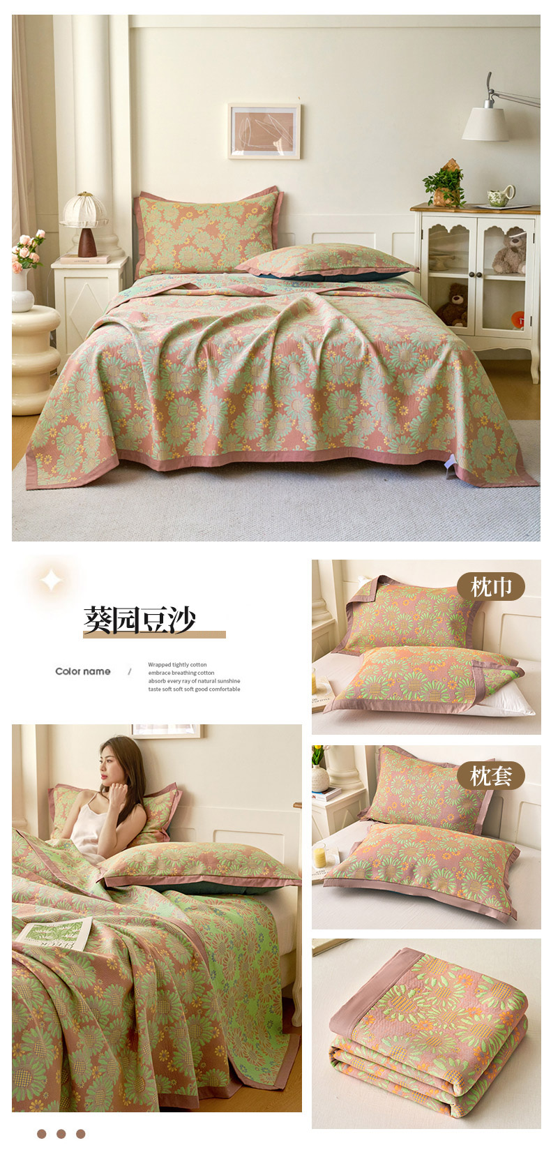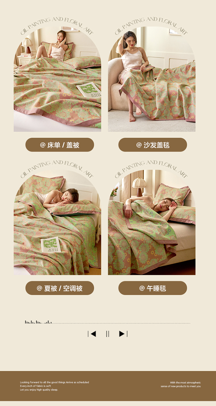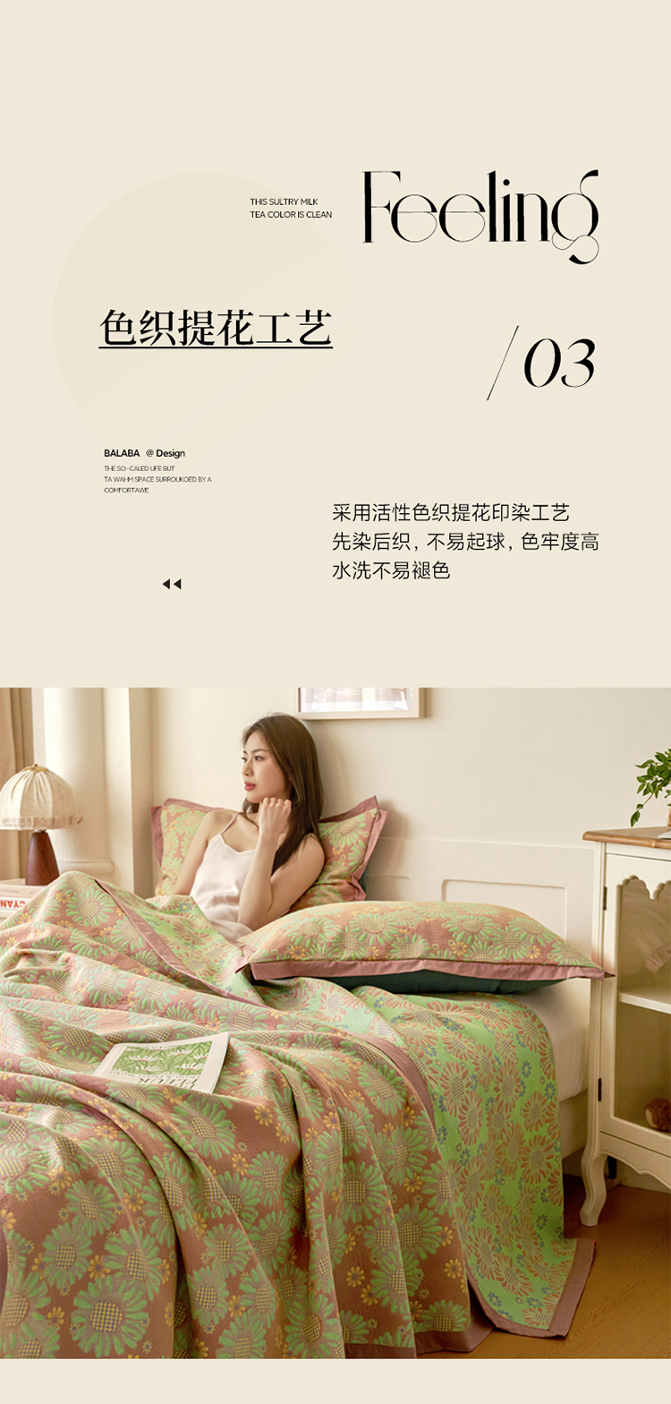 • 91家纺网 家纺一手货源 找家纺 棠薇家纺 2025新款全棉彩纱双层纱夏被三层纱多功能毛巾被纱布毯细纱床盖 葵园豆沙