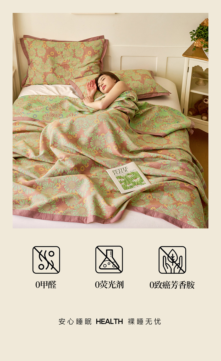 当前位置: 91家纺网 > 商品网购 > 床上用品 > 床盖 > 棠薇家纺 2025新款全棉彩纱双层纱夏被三层纱多功能毛巾被纱布毯细纱床盖 葵园豆沙