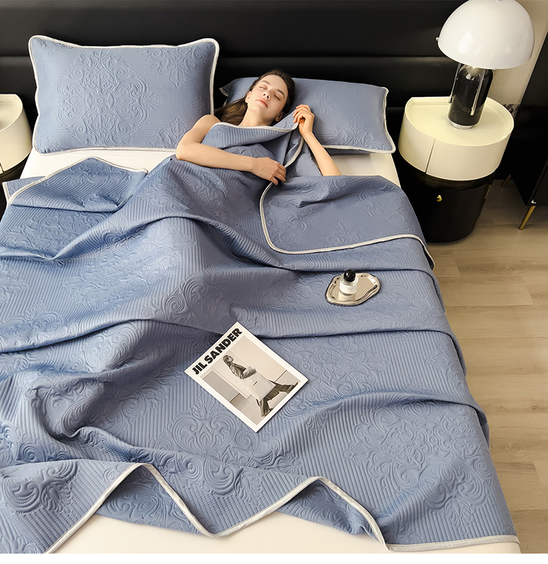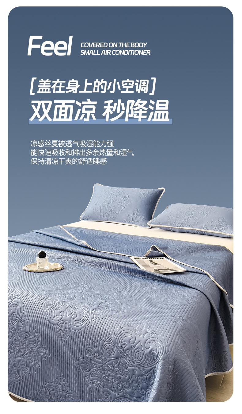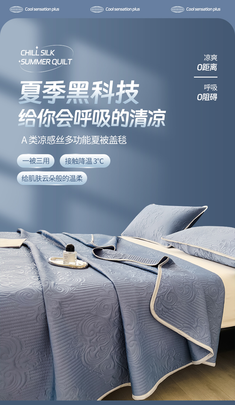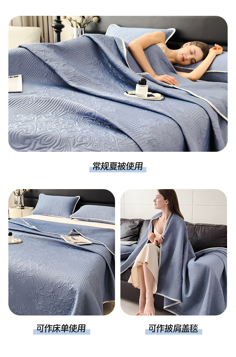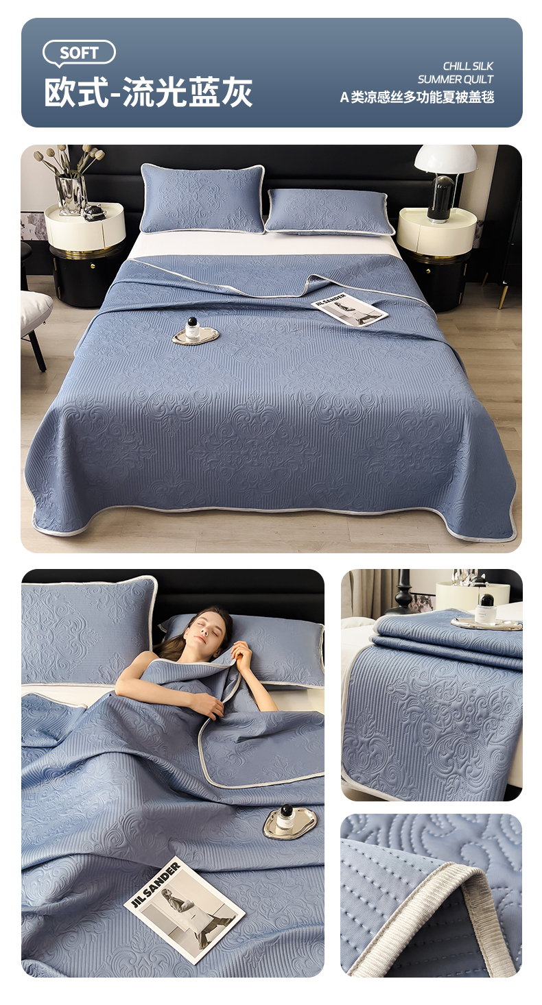 商品名称:世纪绒品 2025新款A类凉感科技欧式多功能夏被床单盖毯 欧式-流光蓝灰