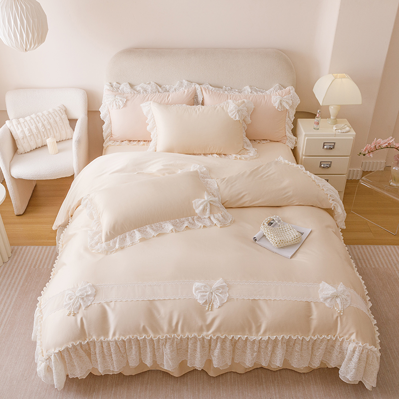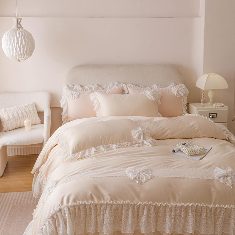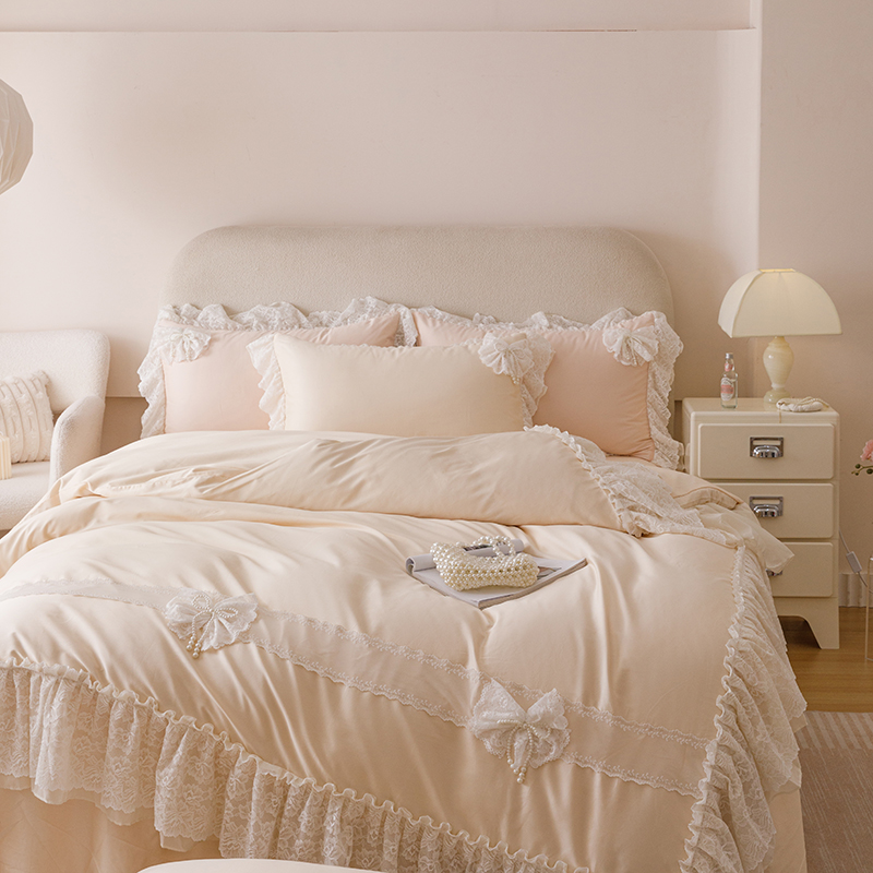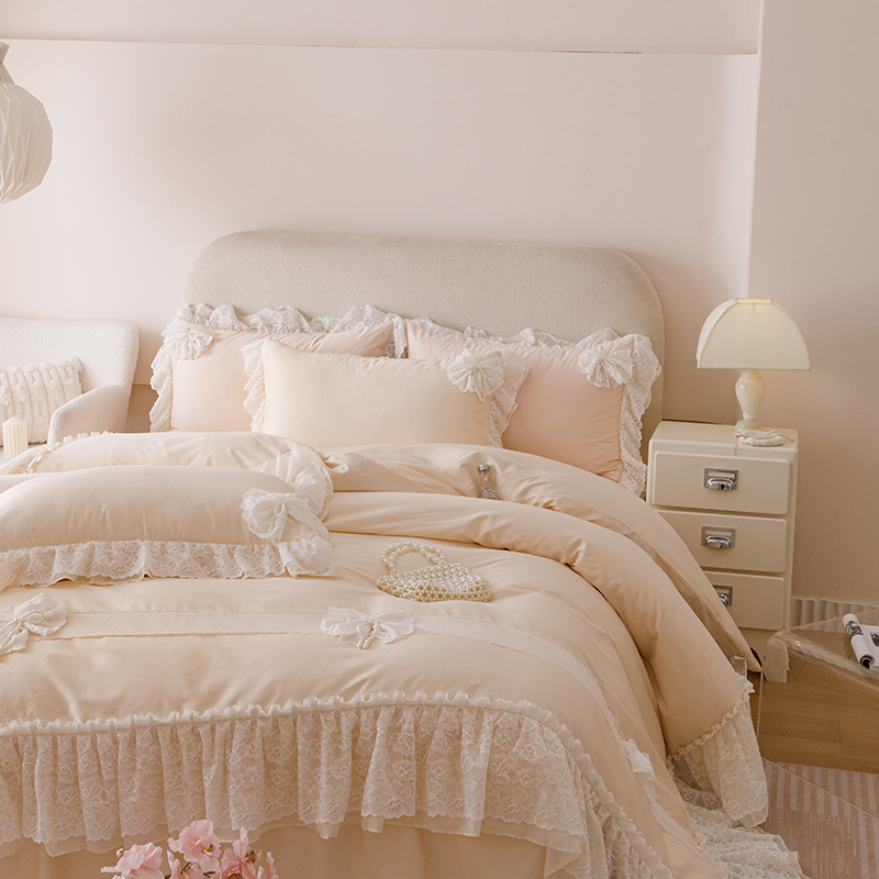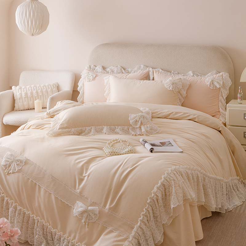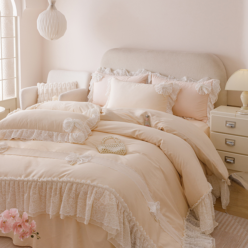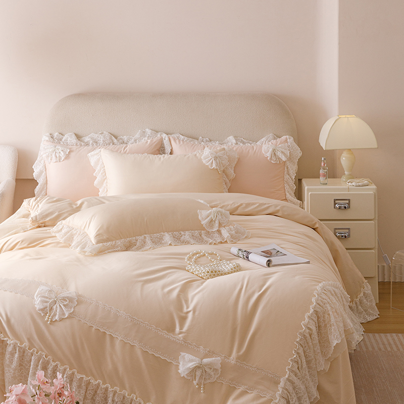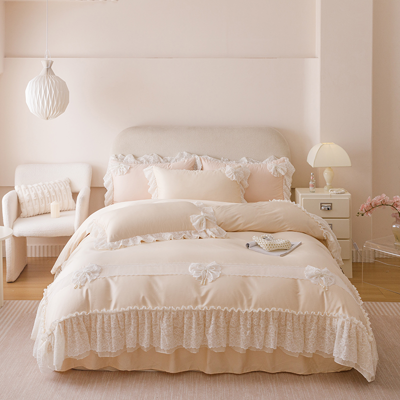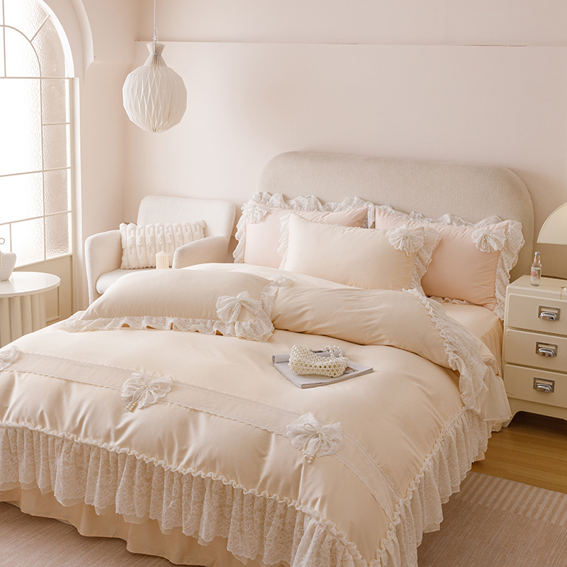 (总)北纬27度 2025新款全棉长绒棉纯棉高定春款花边四件套-一笑倾城 风格二,一笑倾城-天蓝,一笑倾城-香槟金,一笑倾城-珠光粉