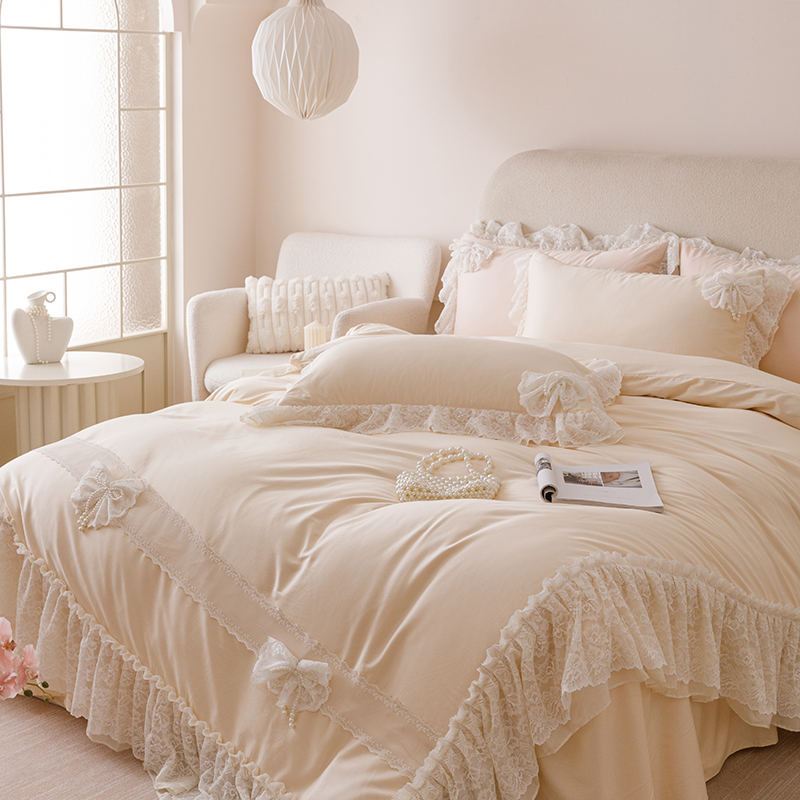 (总)北纬27度 2023新款高克重防静电牛奶绒四件套-人鱼小姐法式花边唯美系列金枝玉叶,金枝玉叶-天蓝,金枝玉叶-浅粉,金枝玉叶-牛油果绿,金枝玉叶-米色,金枝玉叶-紫色