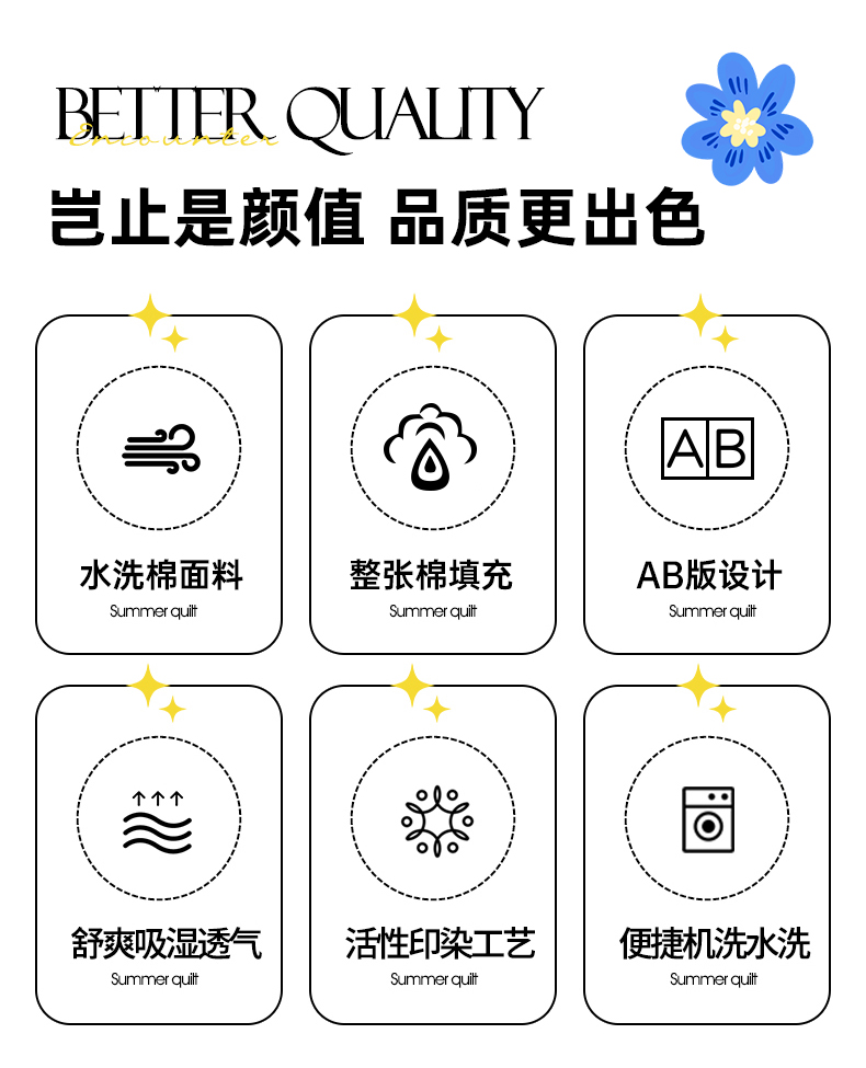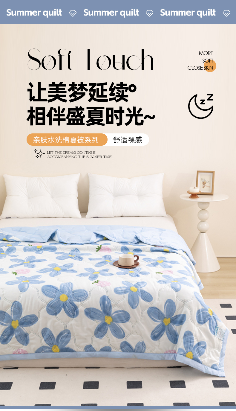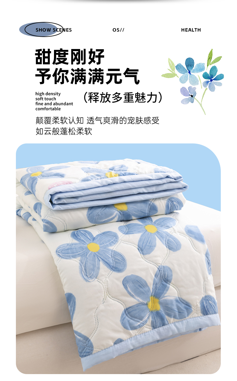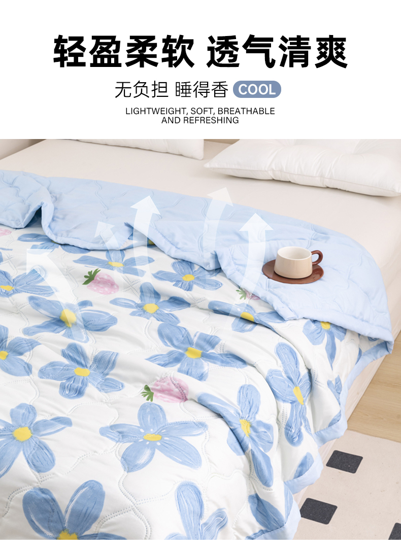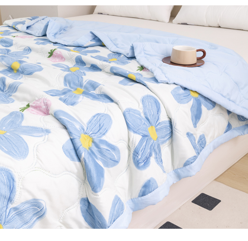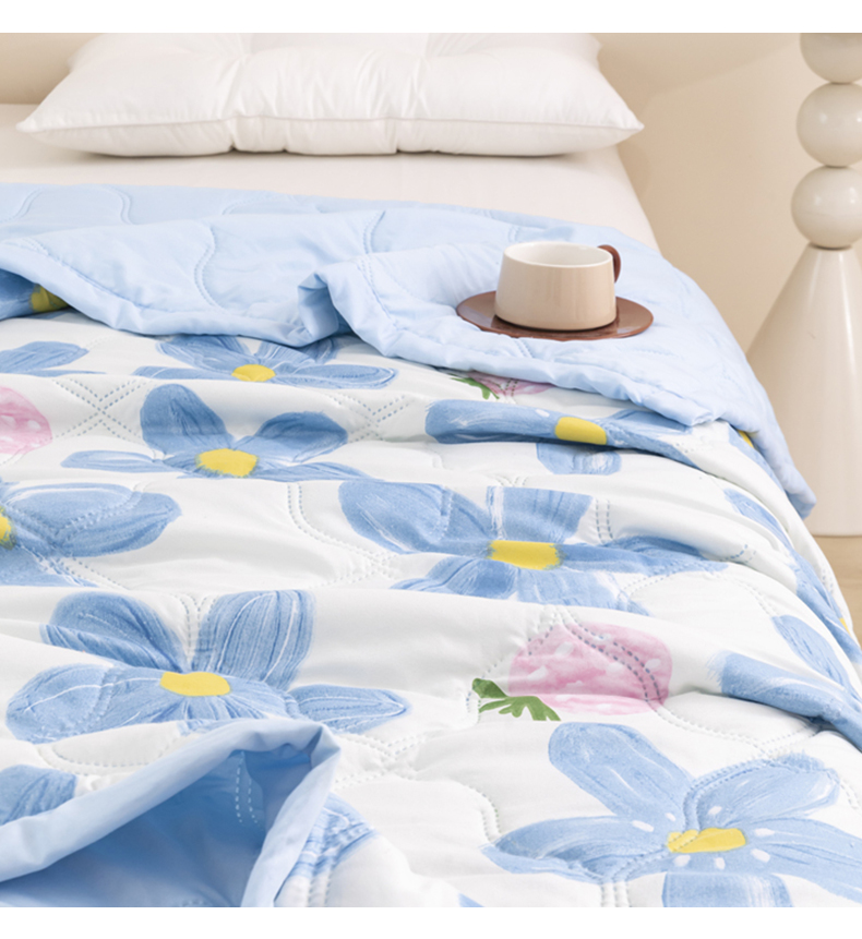 商品名称:席万佳 2025新款直播热款印花夏凉被空调被被子被芯水洗棉夏被 蓝色花朵