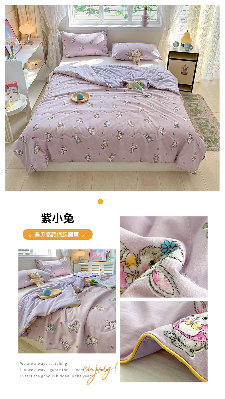 贝扬思家纺 2025新款水洗皱皱纱系列夏被-系列二 泡芙兔兔