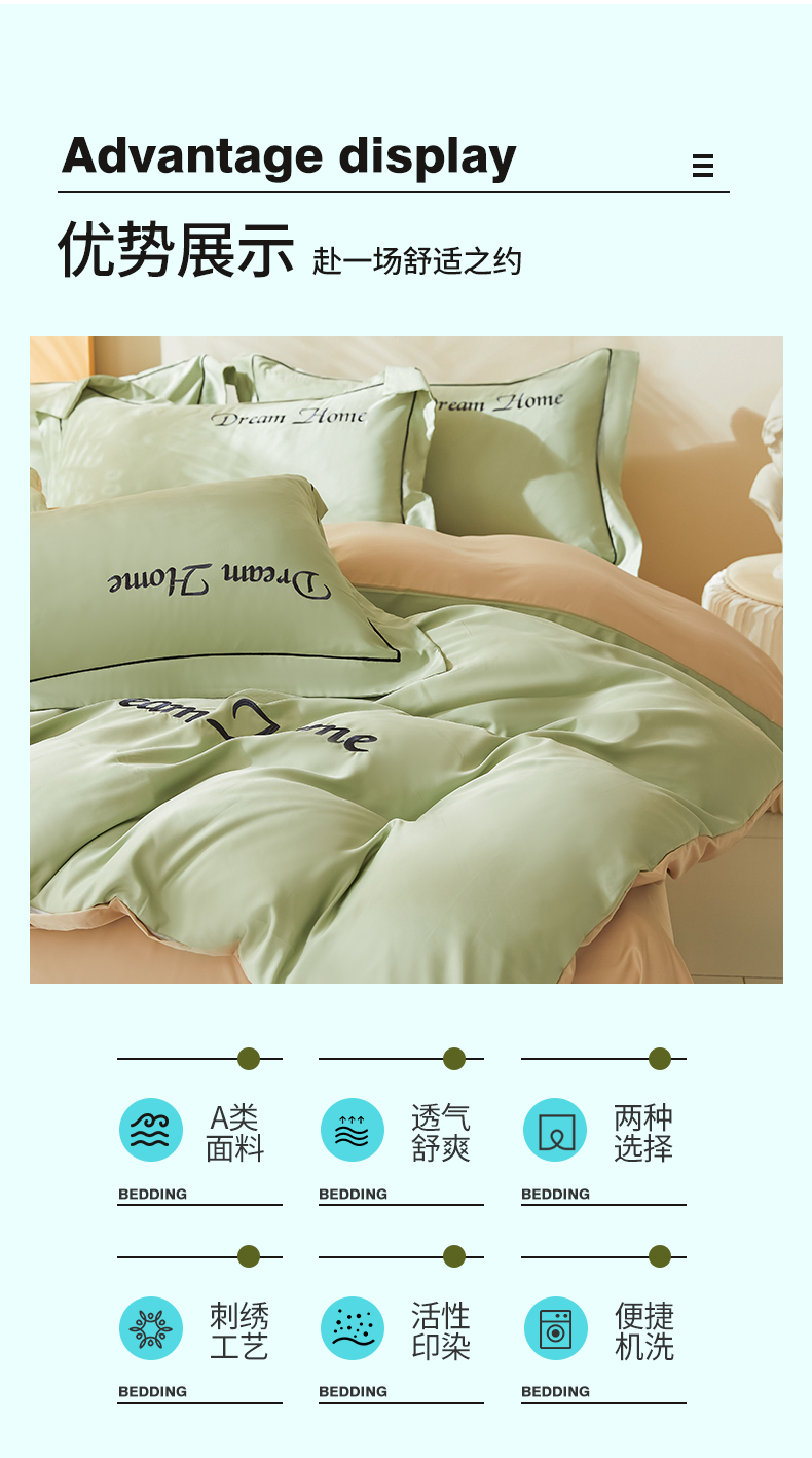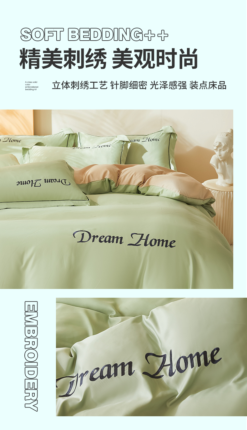 当前位置: 91家纺网 > 商品网购 > 床品套件 > 四件套 > 夏被四件套 > 七仙女家纺 2025新款水洗真丝-梦幻家园系列四件套 浅豆绿+奶杏色