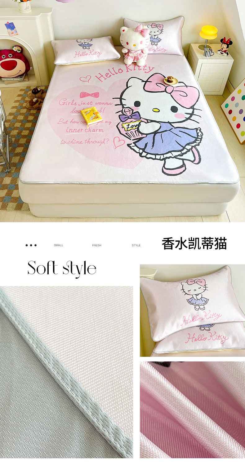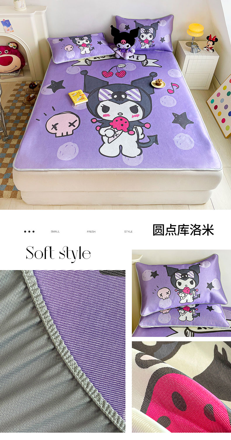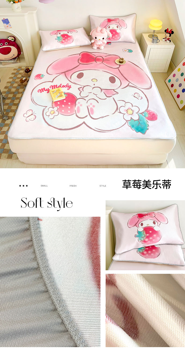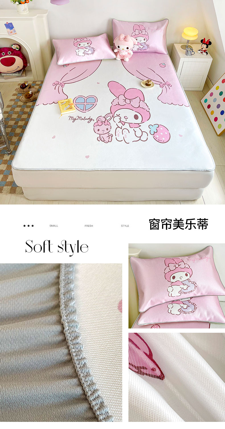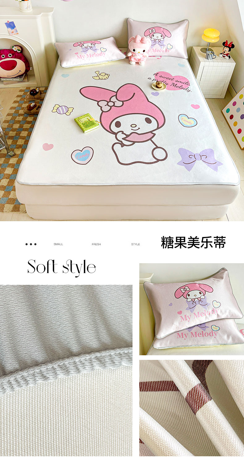 (总)米帛家纺 2025新款大版三丽鸥碳光冰丝凉席床笠款,圆点酷洛米,彩虹帕恰狗,彩虹玉桂狗,草莓美乐蒂,窗帘美乐蒂,粉色酷洛米,皇冠玉桂狗,木马美乐蒂,气球玉桂狗,巧克力酷洛米,糖果美乐蒂,糖果玉桂狗,香水凯蒂猫,樱桃凯蒂猫,樱桃酷洛米