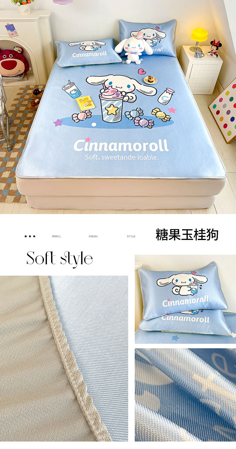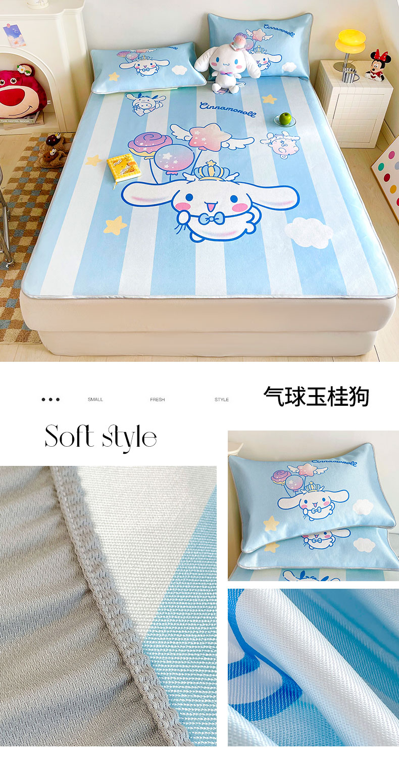 (总)米帛家纺 2024新款大版三丽鸥A类凉感丝乳胶凉席 床笠款,樱桃凯蒂猫,大脸凯蒂猫,好学库洛米,滑板帕恰狗,旅行玉桂狗,绿色库洛米,气球玉桂狗,巧克力库洛米,爆米花帕恰狗