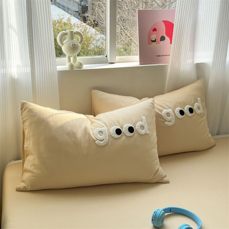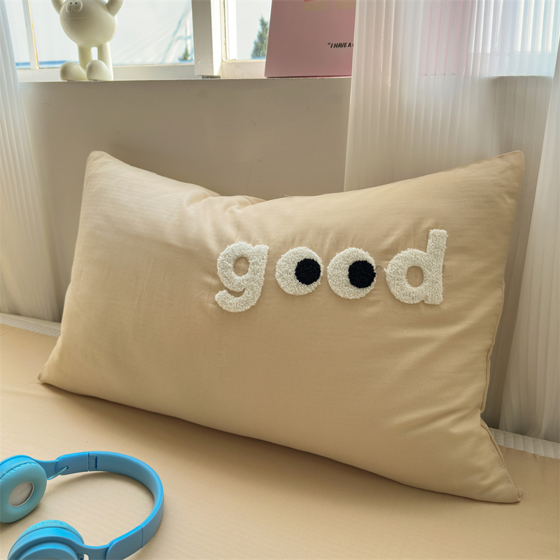 丽涵 2025新款全棉纯棉大雁纹绣花单品枕套 good香槟金