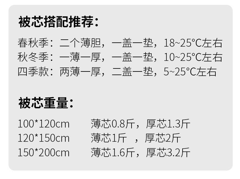 120*150cm单被套+枕芯+1个薄被芯+1个厚被芯 | ¥264.00 |