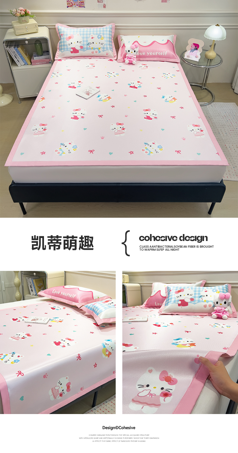 商品名称:摩妮卡 2025小清新数码冰丝席 碳光席三件套 凯蒂萌趣