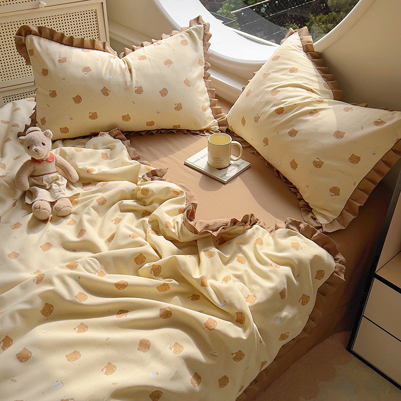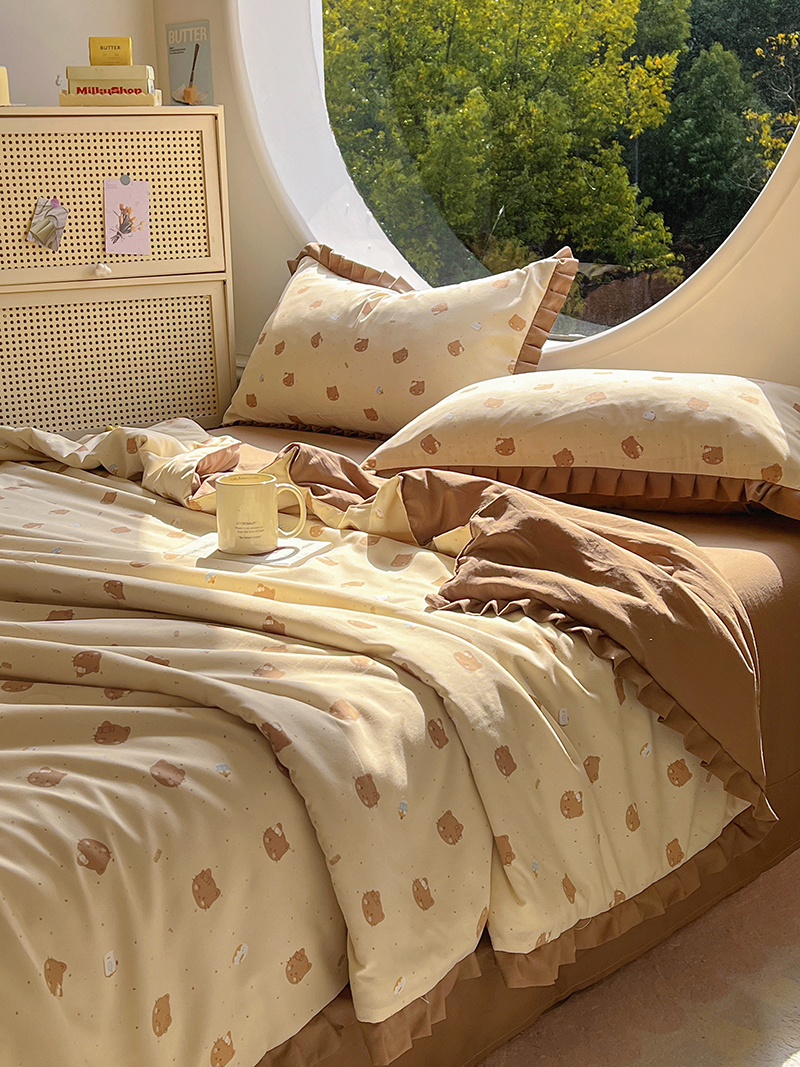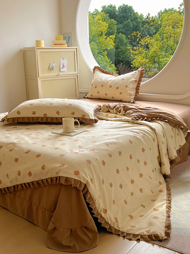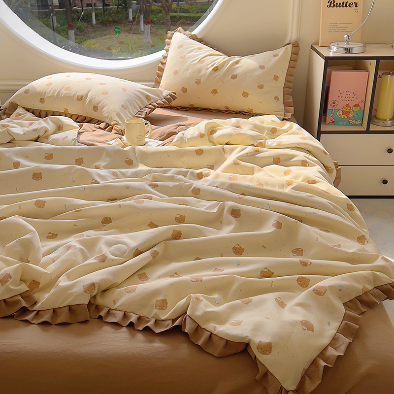 (总)欧尚 2026新款花边床盖四件套,春和,花束,花野,灰樱桃,咖爱心,咖豹纹,咖啡小猫,梨花落,绿爱心,梦境,木马,奶油波点,暖橘枝,暖心,人间草木,田园兔,小女孩,星愿,摇摇马,紫爱心,紫豹纹,紫苏