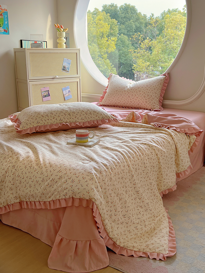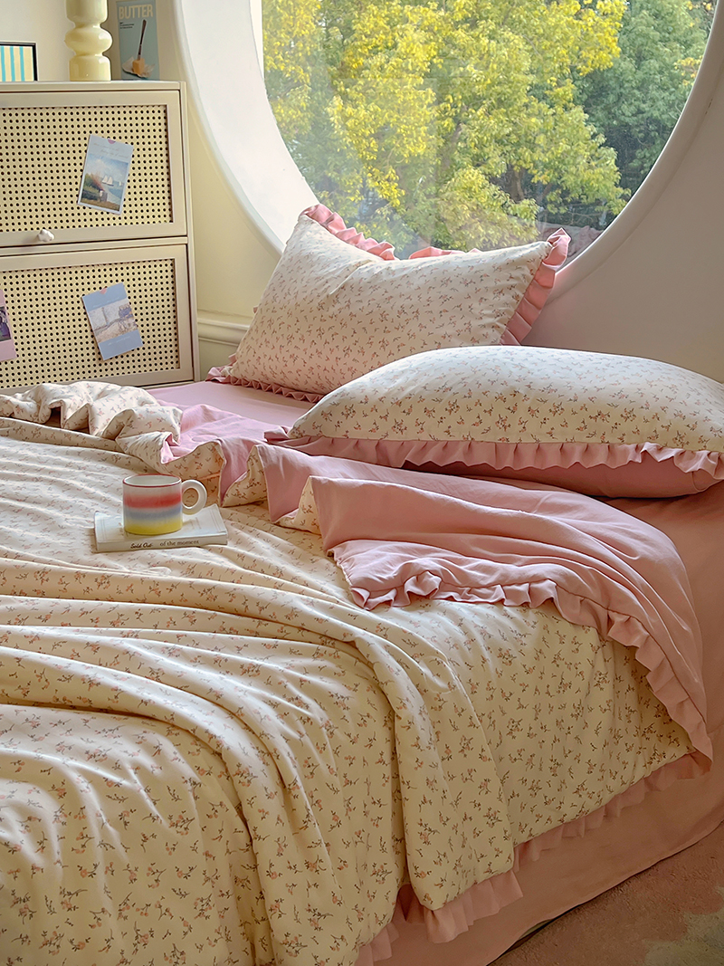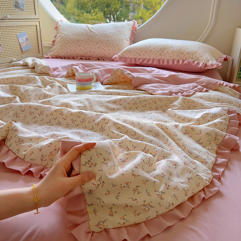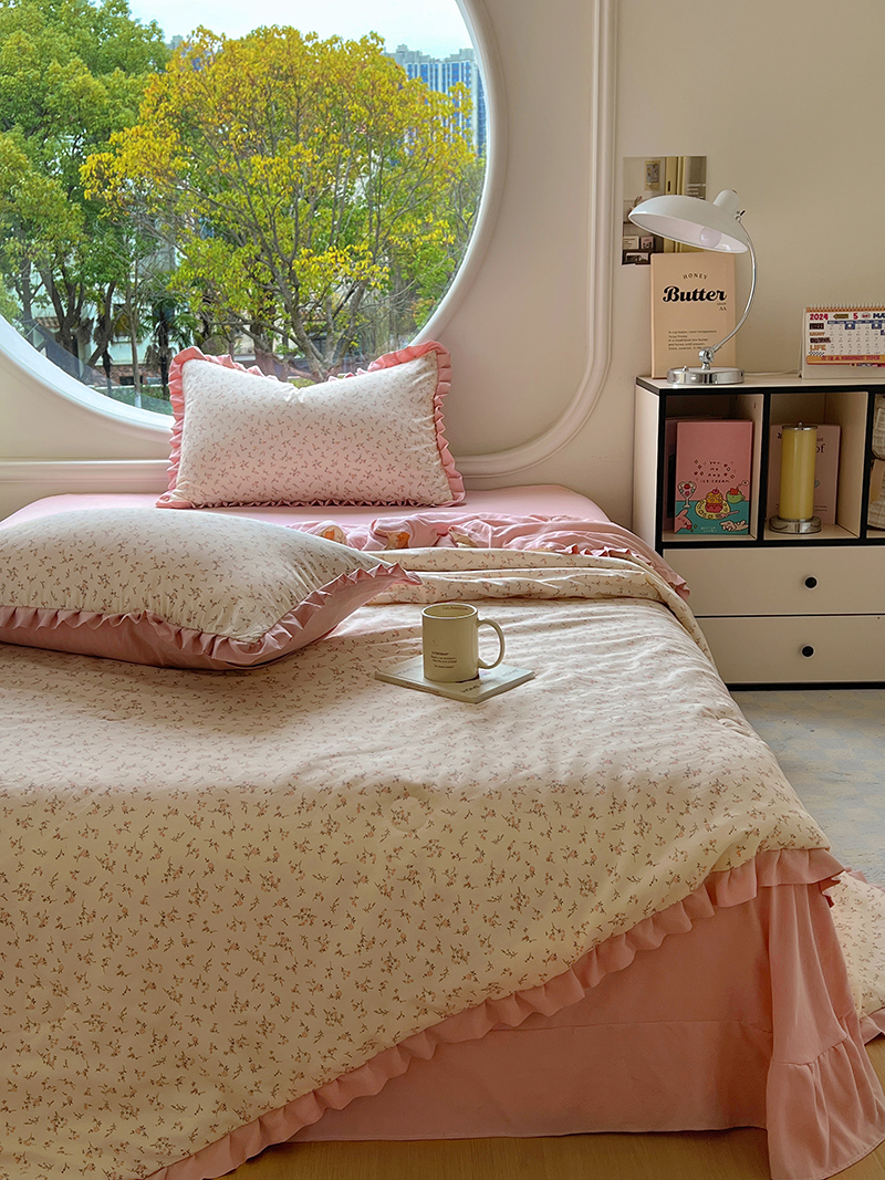 (总)欧尚 2026新款花边床盖四件套,春和,花束,花野,灰樱桃,咖爱心,咖豹纹,咖啡小猫,梨花落,绿爱心,梦境,木马,奶油波点,暖橘枝,暖心,人间草木,田园兔,小女孩,星愿,摇摇马,紫爱心,紫豹纹,紫苏