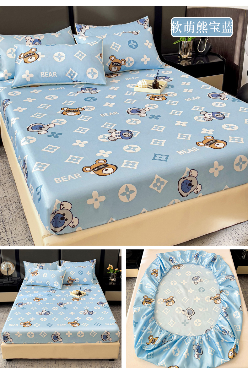 纽缦家纺 2025新款印花冰丝床笠 软萌熊宝蓝