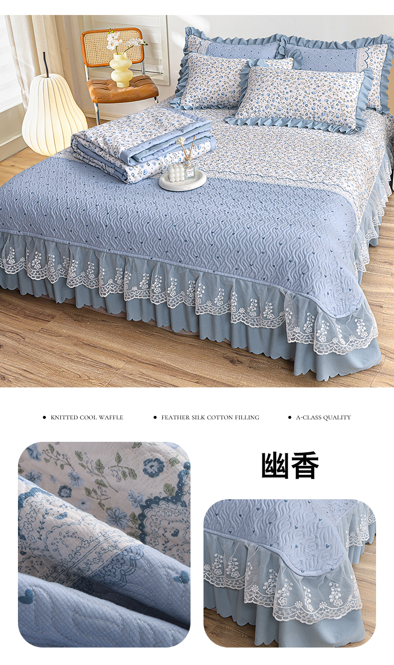 当前位置: 91家纺网 > 商品网购 > 床品套件 > 四件套 > 夏被四件套 > 梦柏 2025新款韩版双层纱夹棉绗缝床盖夏被四件套 幽香