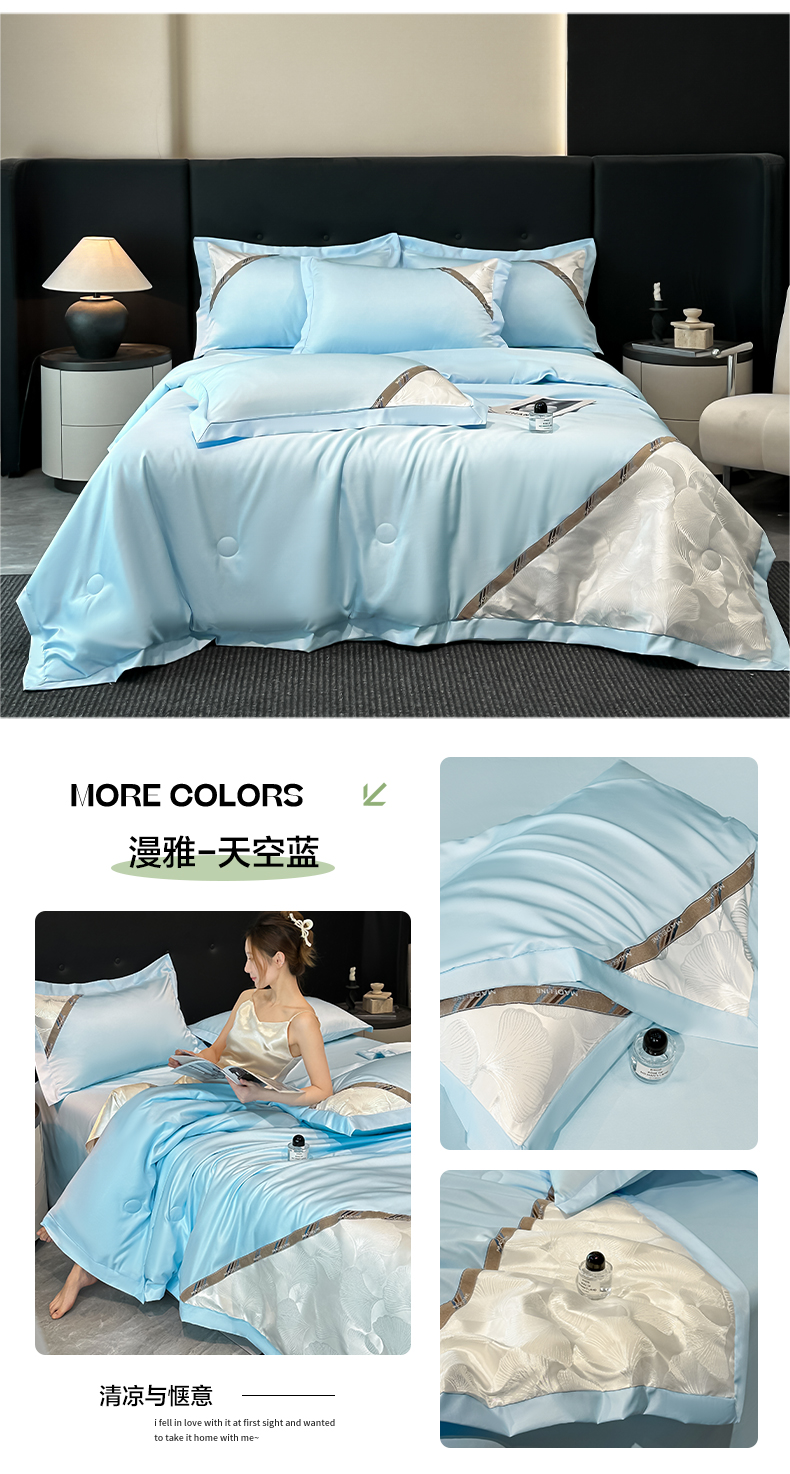 当前位置: 91家纺网 > 商品网购 > 床品套件 > 四件套 > 夏被四件套 > 索飞特家纺 2025新款水洗冰丝拼角夏被四件套-漫雅 漫雅-天空蓝