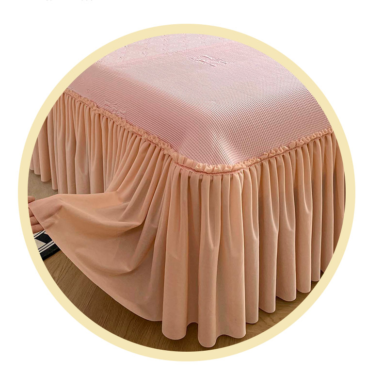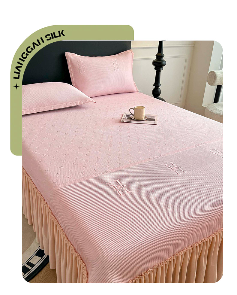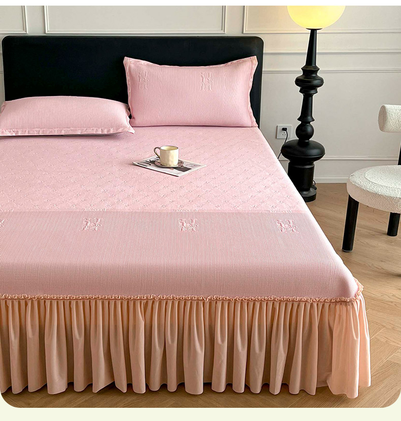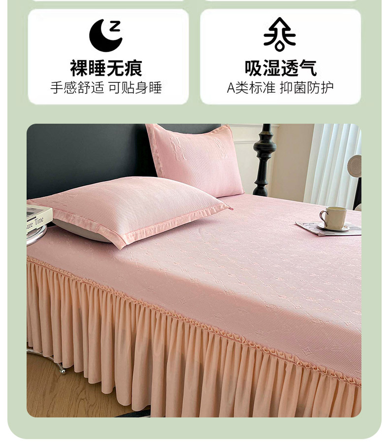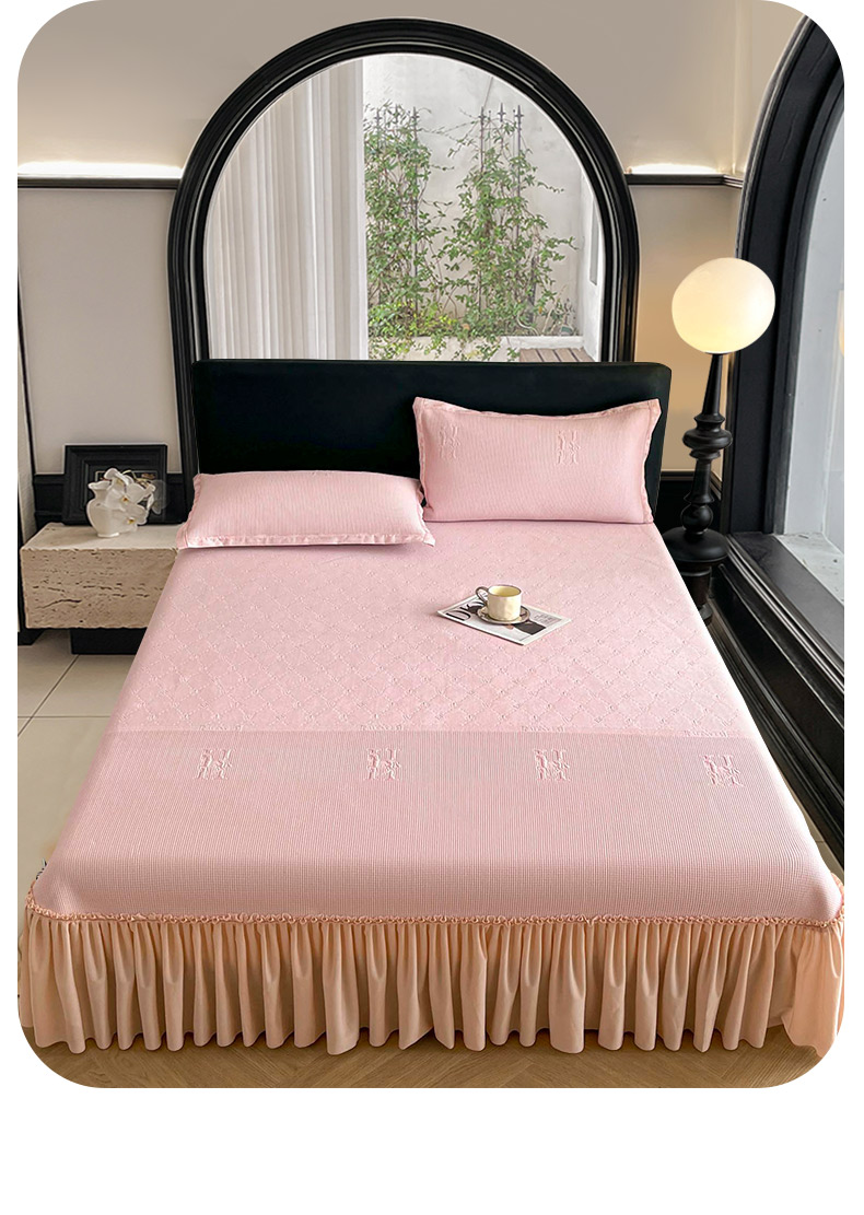 商品名称:鑫琪莱 2025新款5D立体雕花凉感豆豆冰丝床裙三件套 床裙H款-粉