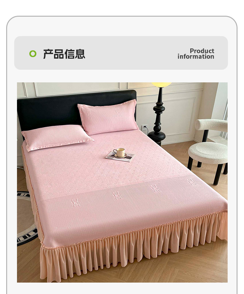 (总)鑫琪莱 2025新款5D立体雕花凉感豆豆冰丝床裙三件套,床裙D款-粉,床裙D款-灰,床裙D款-蓝,床裙H款-粉,床裙H款-灰,床裙H款-蓝,床裙H款-绿