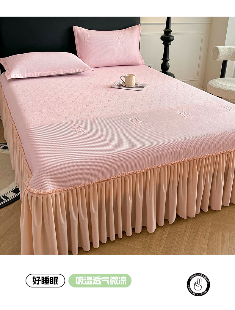 鑫琪莱 2025新款5D立体雕花凉感豆豆冰丝床裙三件套 床裙H款-粉