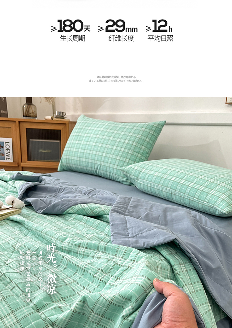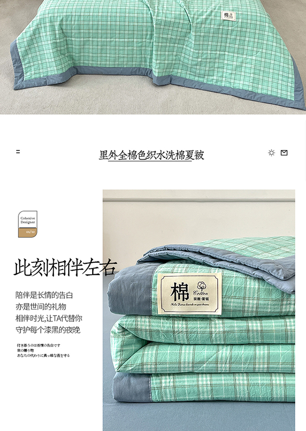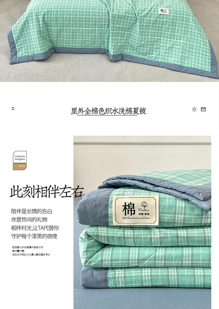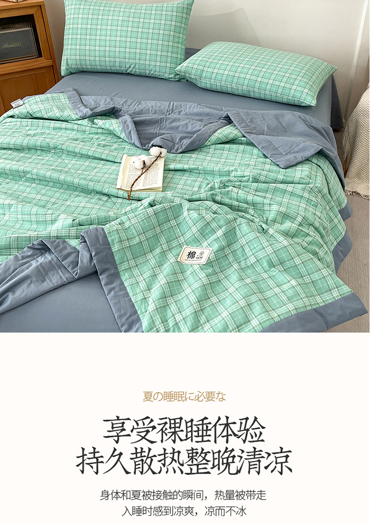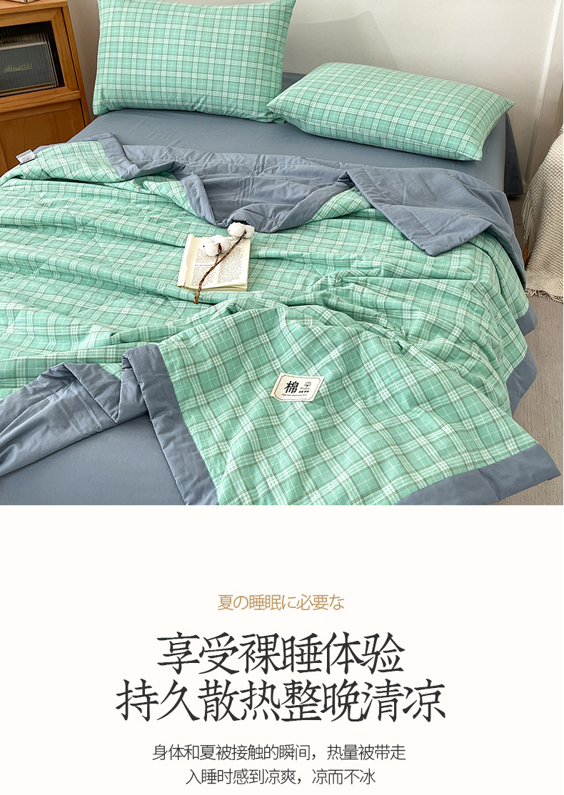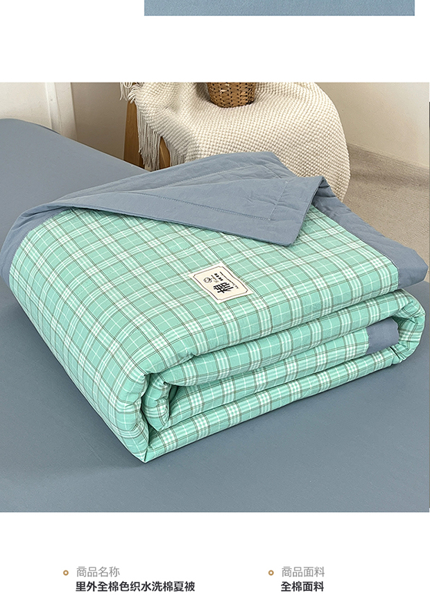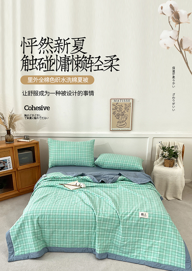 • 91家纺网 家纺一手货源 找家纺 鸣升家纺 2025新款100%里外全棉棉花夏被无印风全棉色织水洗棉夏凉被空调被夏被春秋被单人可机洗 格诺绿