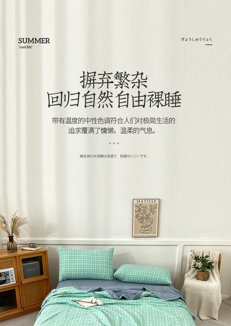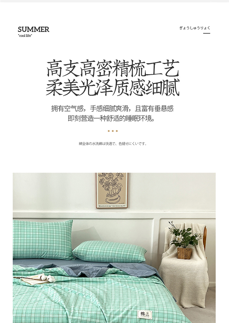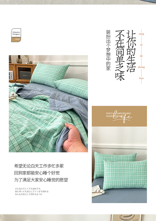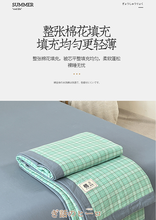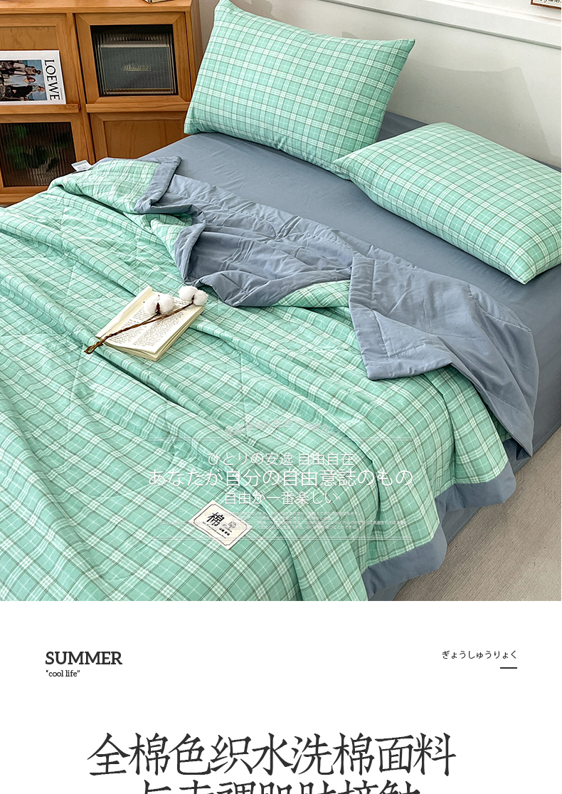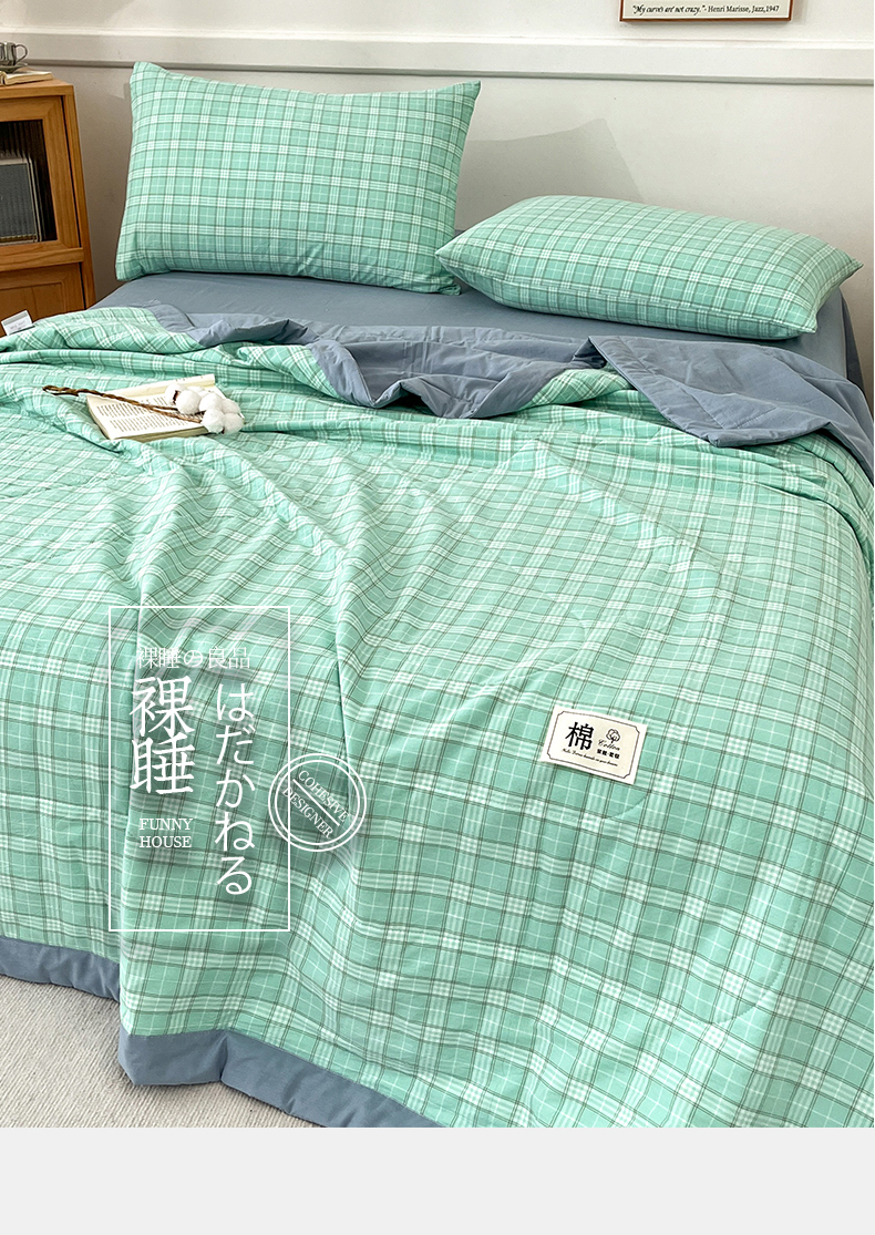 • 91家纺网 家纺一手货源 找家纺 鸣升家纺 2025新款100%里外全棉棉花夏被无印风全棉色织水洗棉夏凉被空调被夏被春秋被单人可机洗 格诺绿