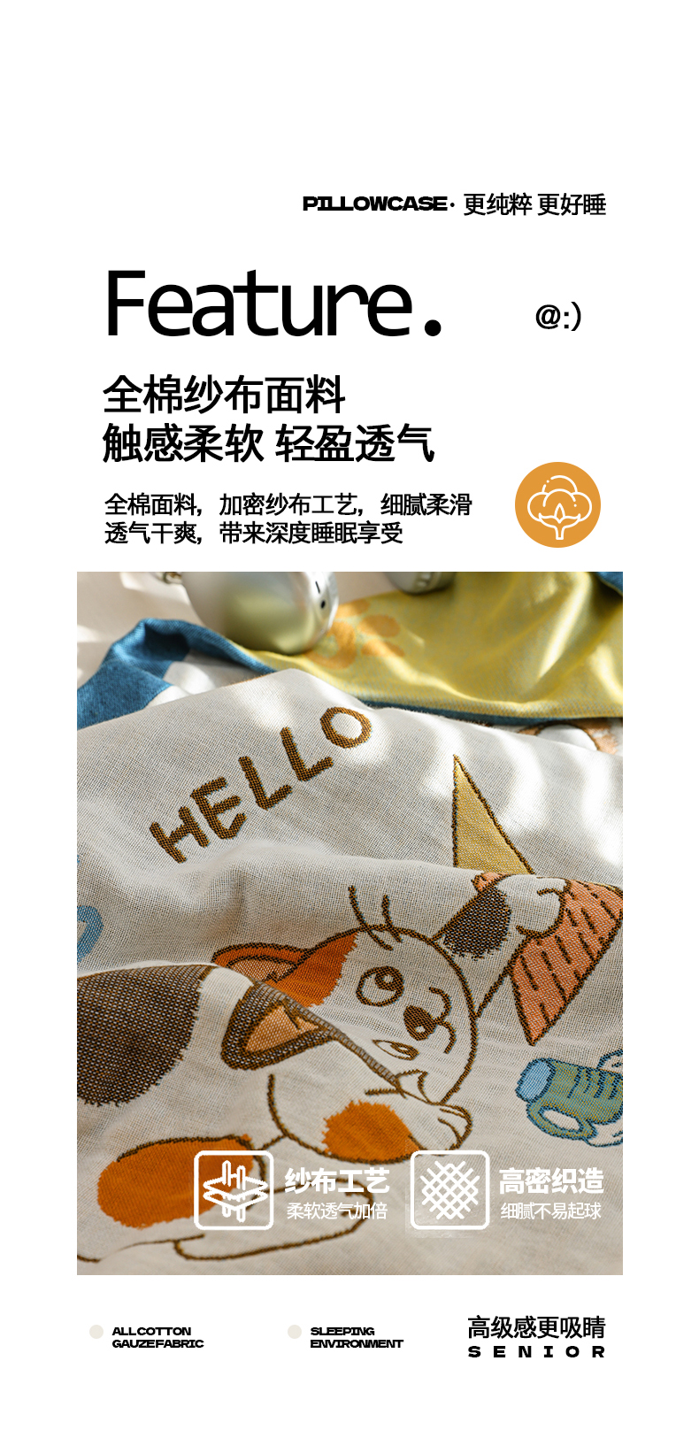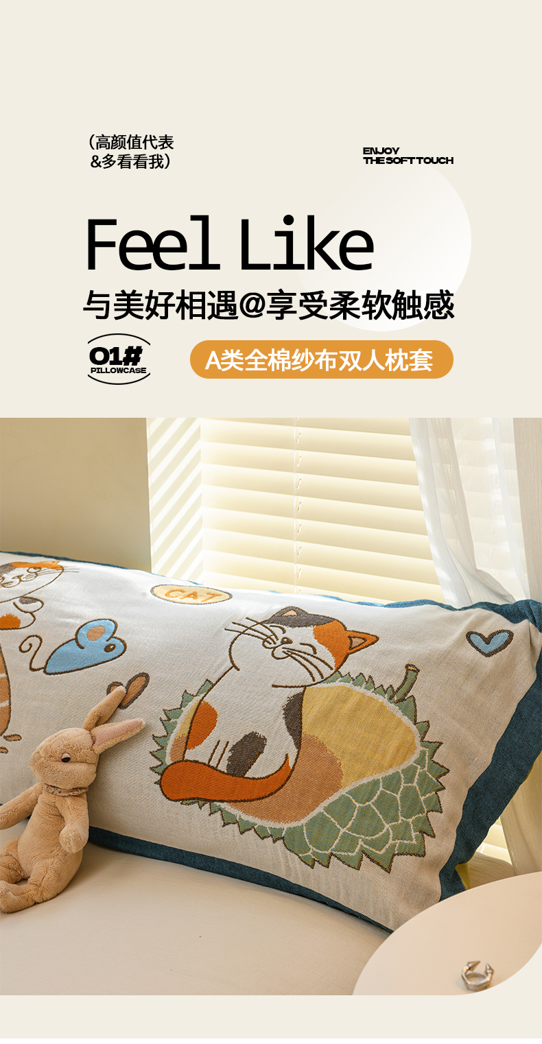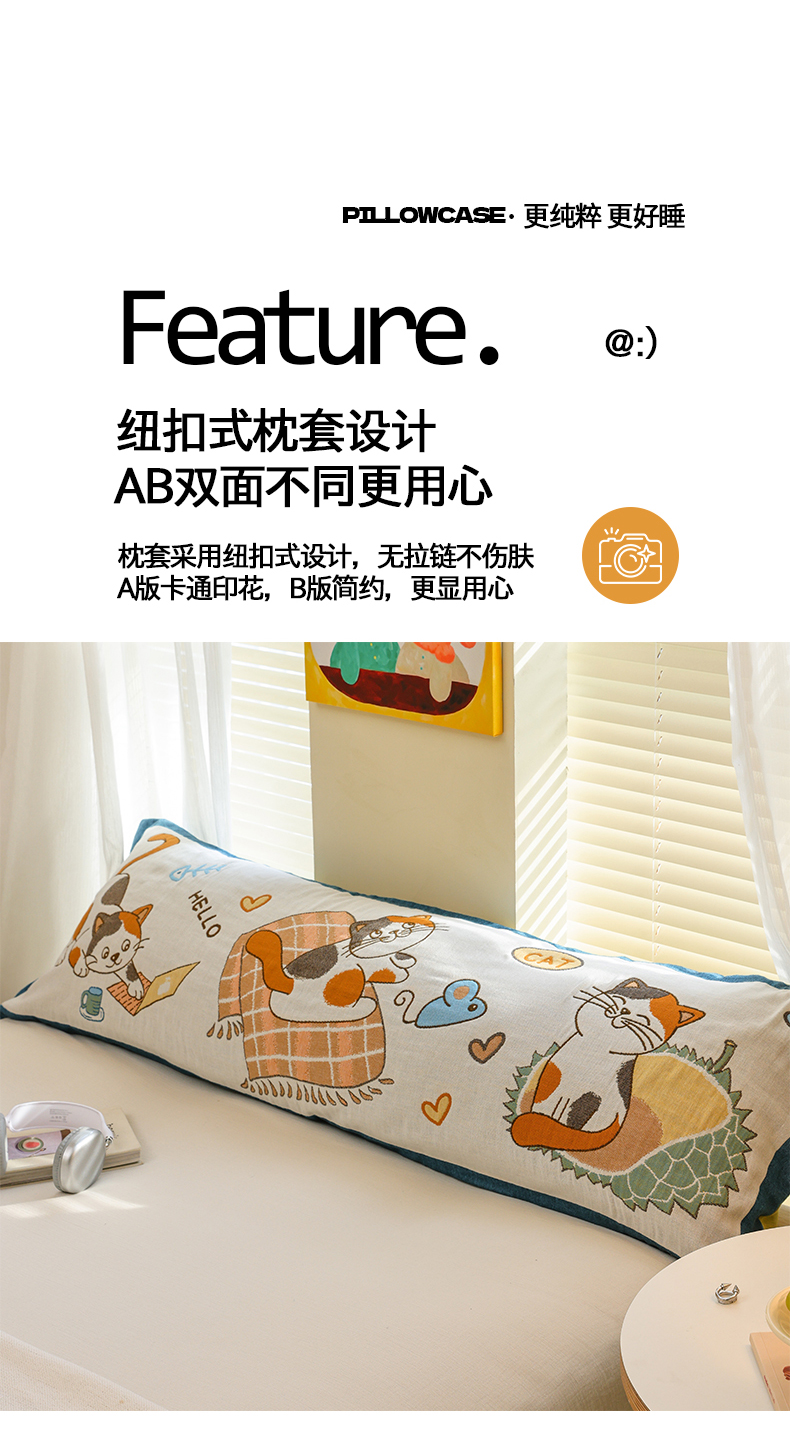 商品名称:雯雨2025新款A类卡通双人纱布枕套 慕斯猫