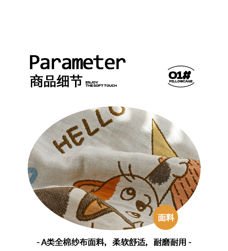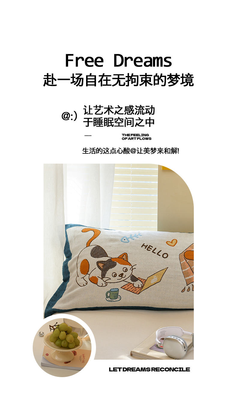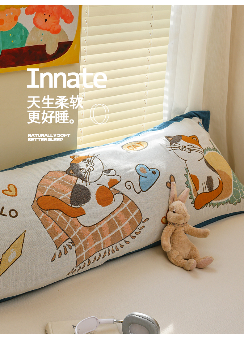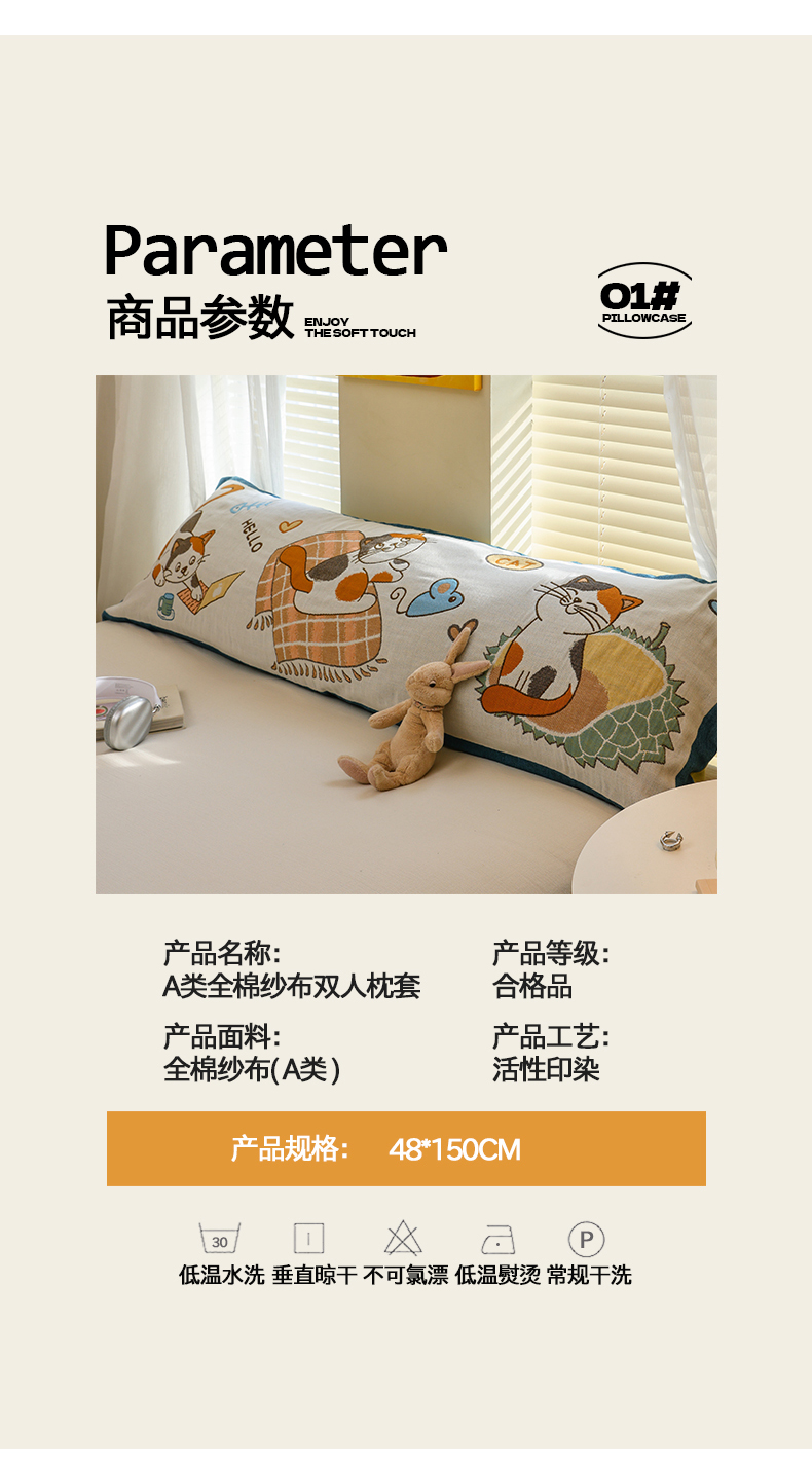 商品名称:雯雨2025新款A类卡通双人纱布枕套 慕斯猫