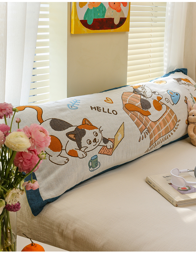 雯雨2025新款A类卡通双人纱布枕套 慕斯猫