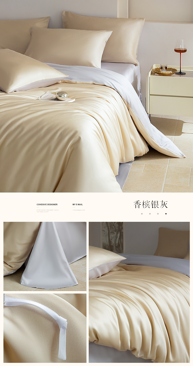 当前位置: 91家纺网 > 商品网购 > 床品套件 > 四件套 > 莱赛尔四件套 > 云栖家居 202560支兰精天丝纯拼色四件套 香槟银灰