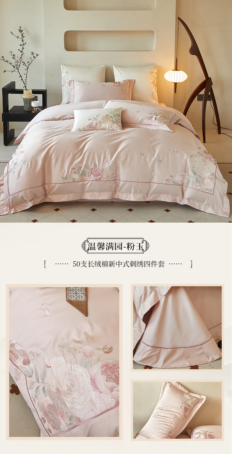 商品名称:【2025】50支50S长绒棉刺绣四件套新中式工艺款 玉露清华 控价478-498元
