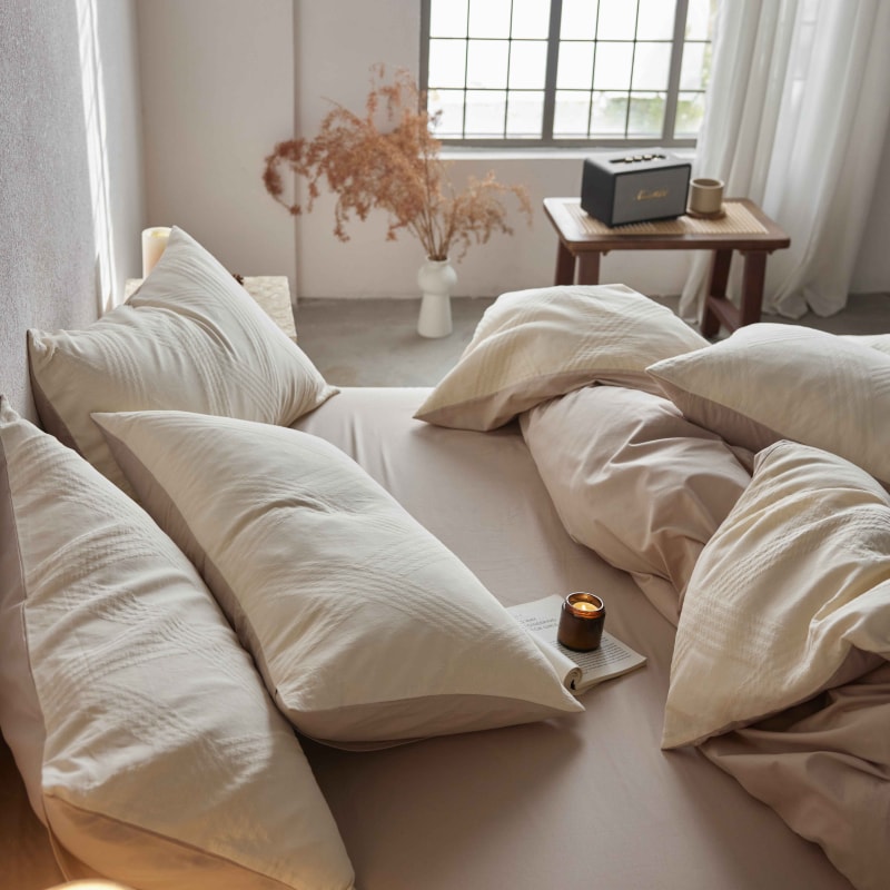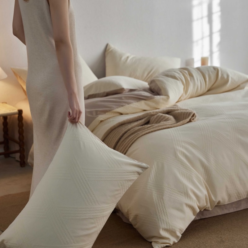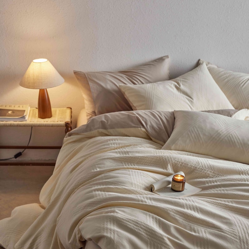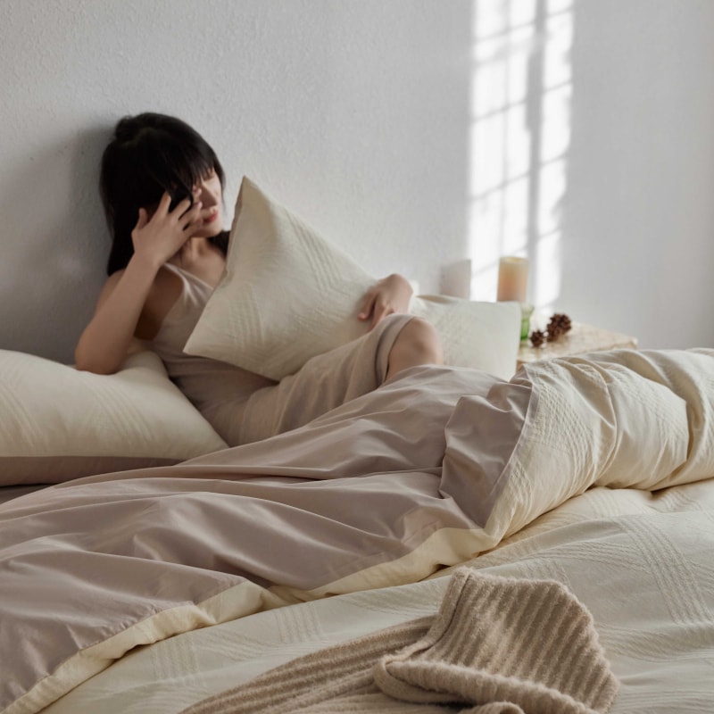 (总)安莱生活 2025春夏新款空气层色织提花四件套南阳假日系列,南阳假日-灰咖,南阳假日-卡其,南阳假日-银灰