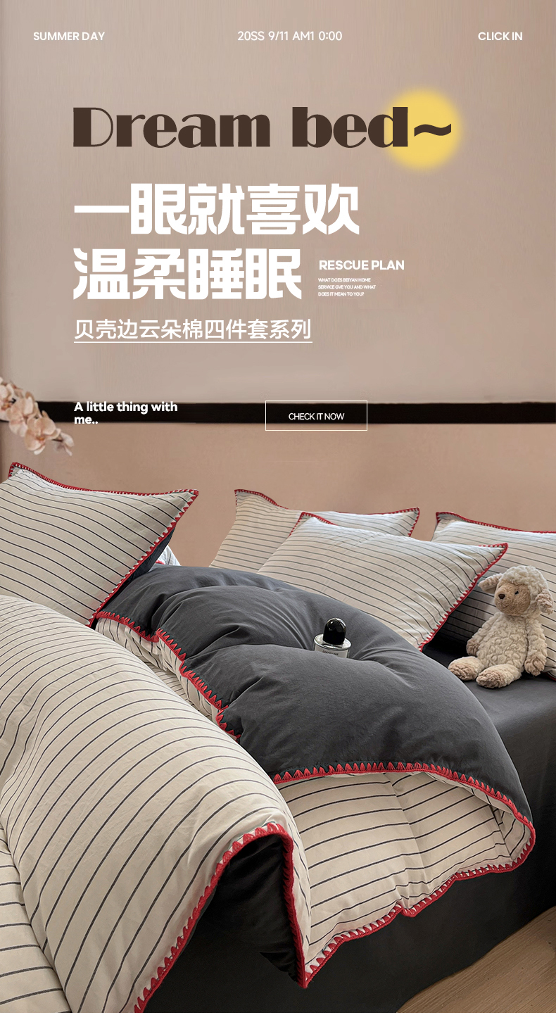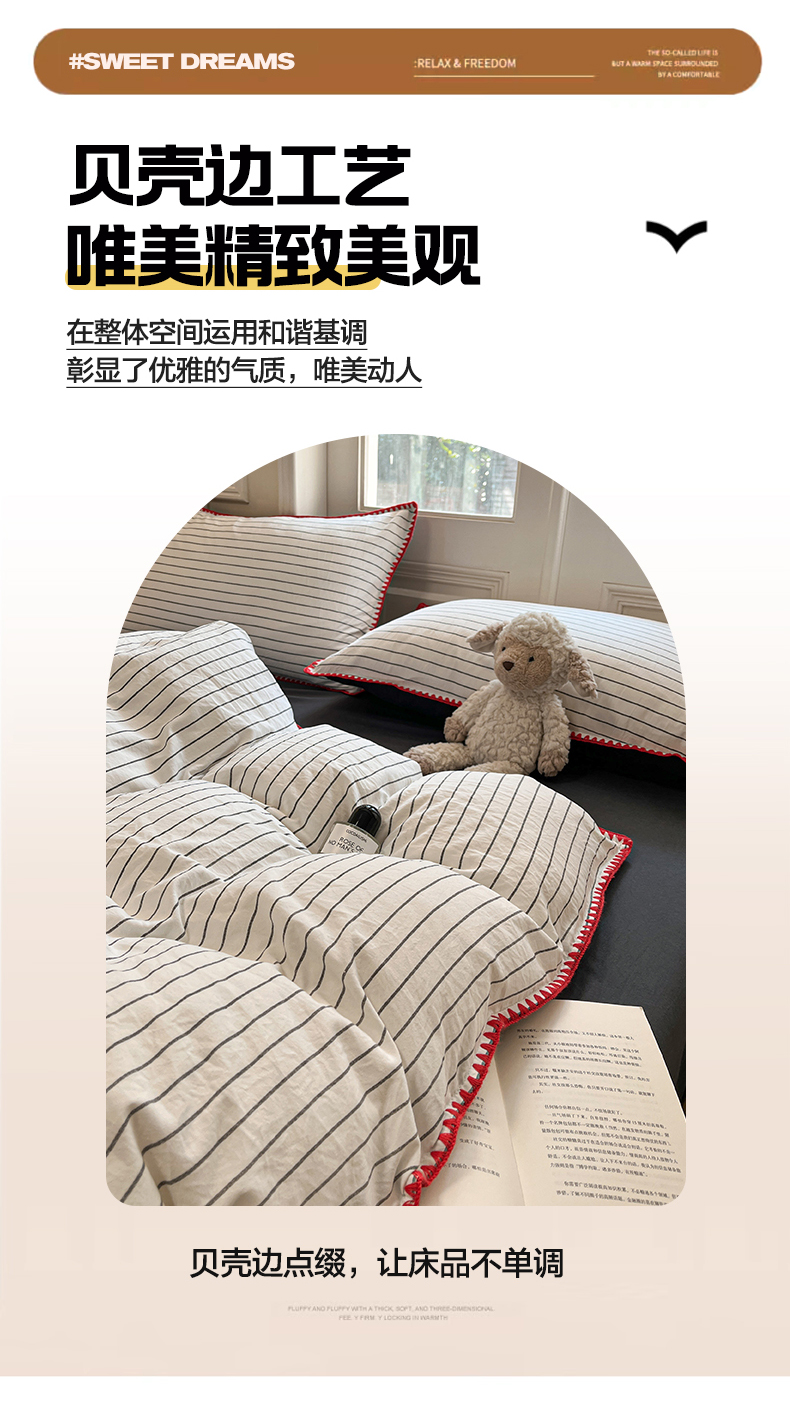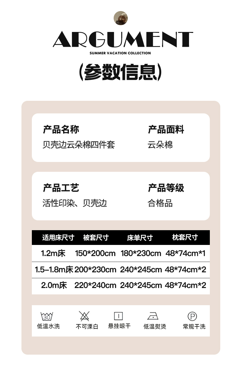 商品名称:(总)首尔家纺 2025新款云朵棉贝壳边款四件套