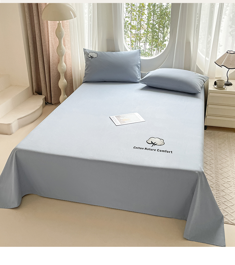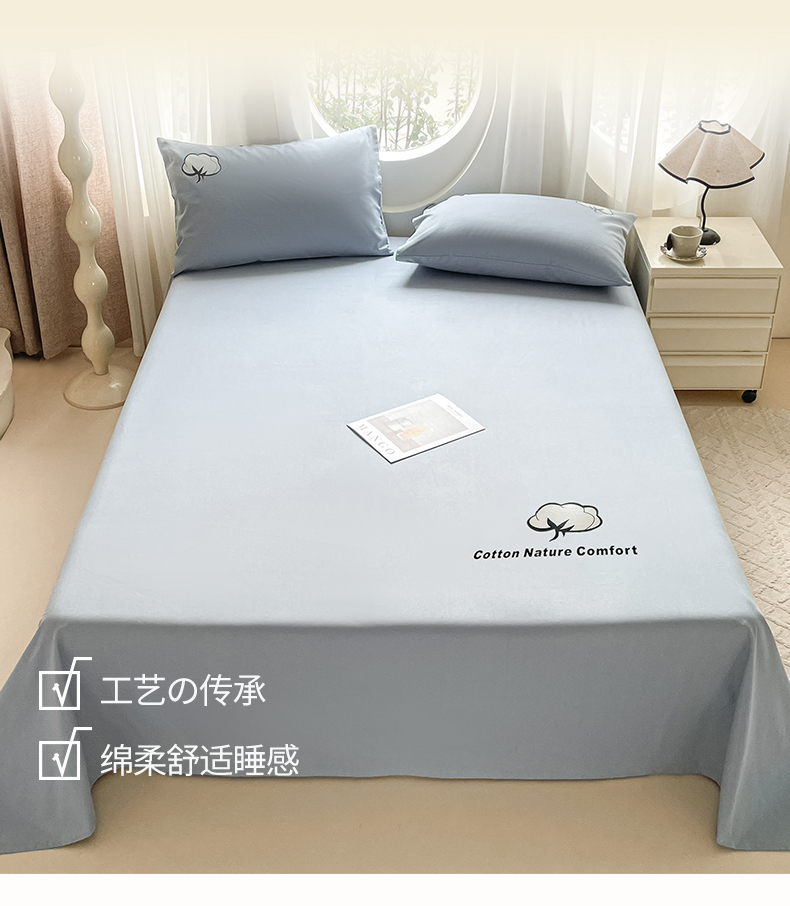 布卢姆床垫 2025新款全棉纯棉烫画全棉老粗布床单凉席 棉朵-蓝灰