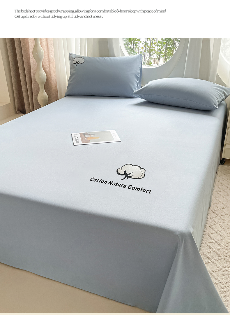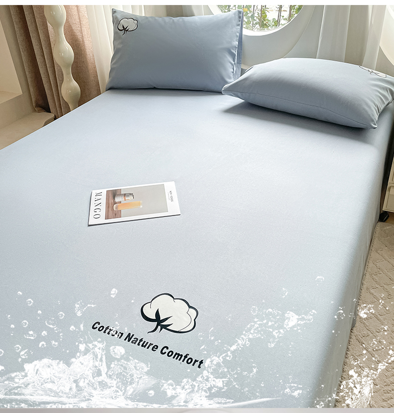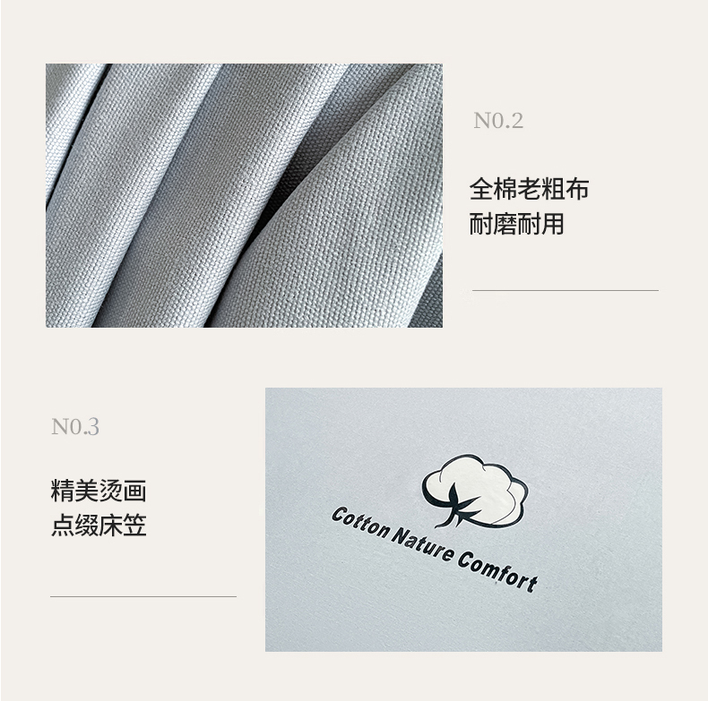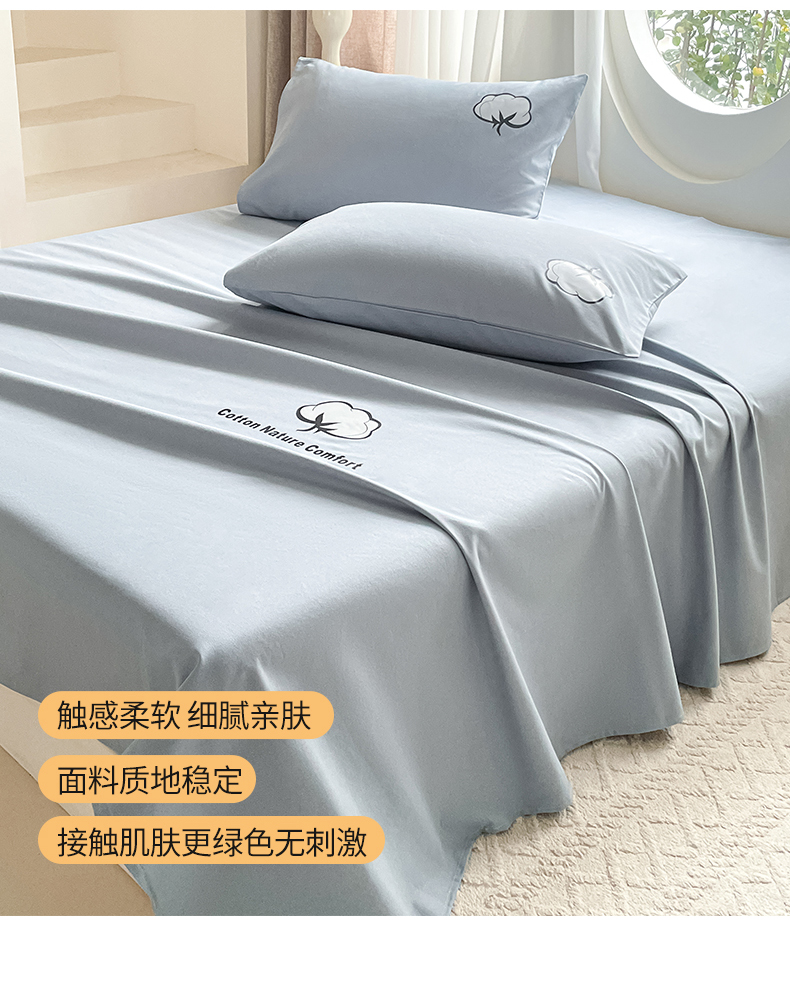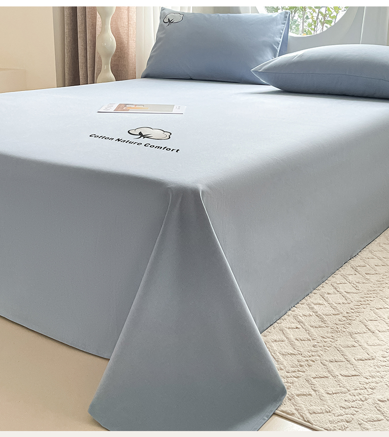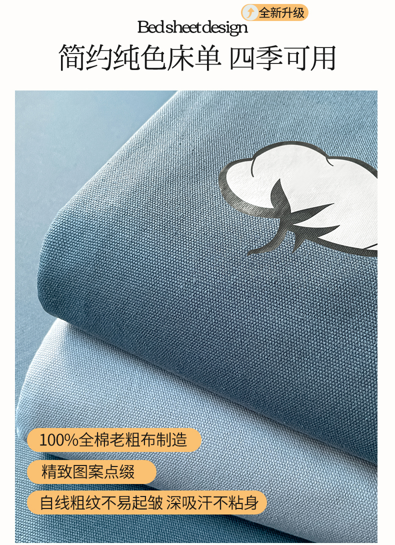 商品名称:布卢姆床垫 2025新款全棉纯棉烫画全棉老粗布床单凉席 棉朵-蓝灰