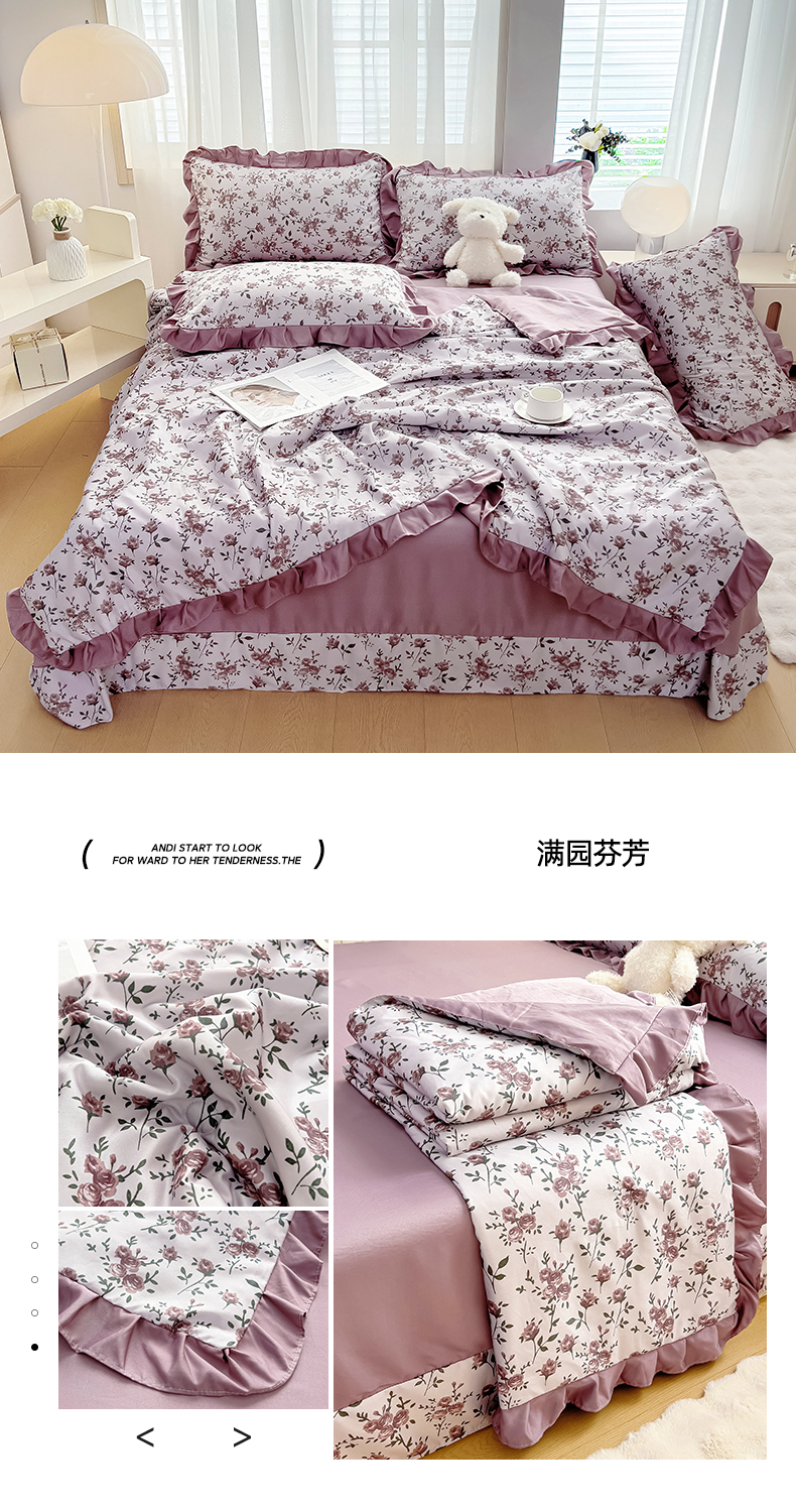 商品名称:找底底家纺 2025新款60S水洗天丝夏被夏凉被空调被床裙四件套 满园芬芳
