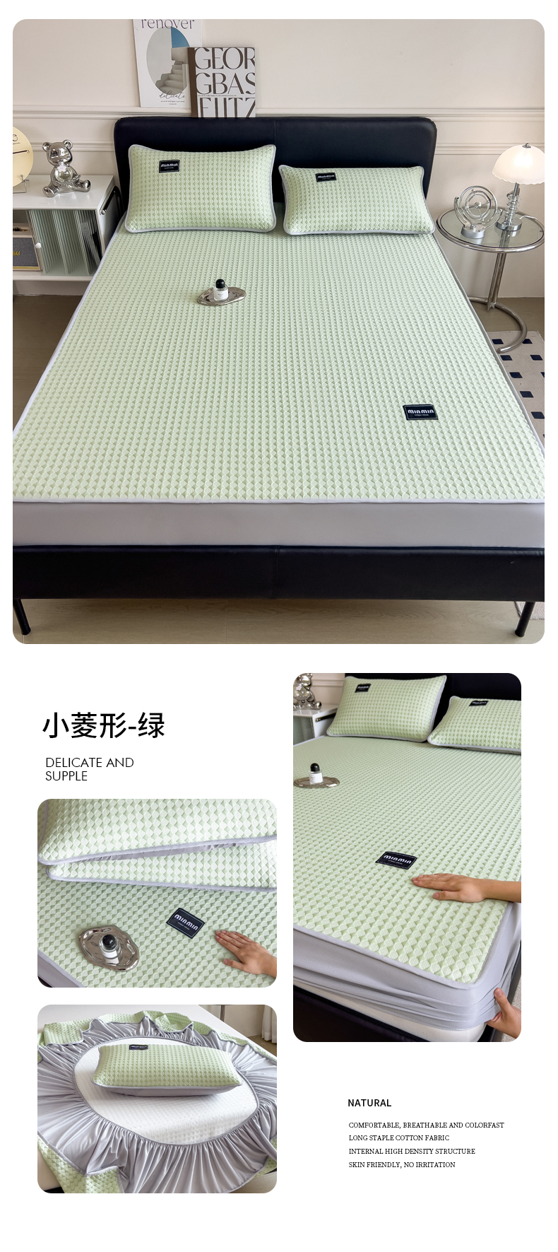 商品名称:(总)丝羽坊 2025新款立体冰豆豆纯色软凉席-床笠款 小菱形-绿