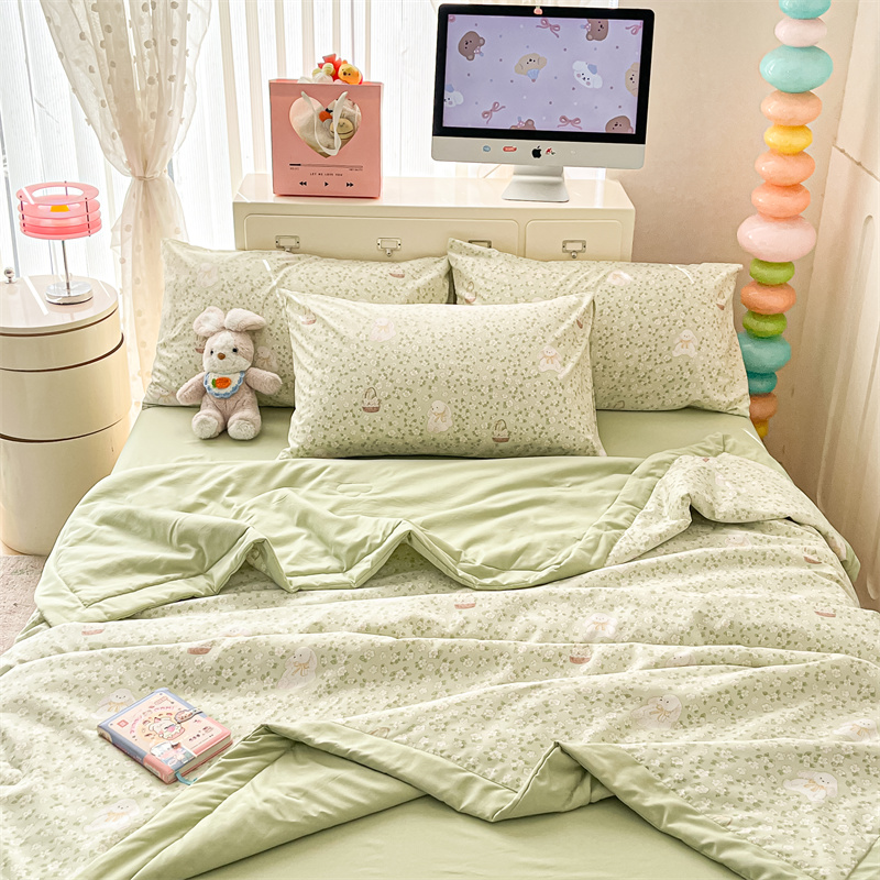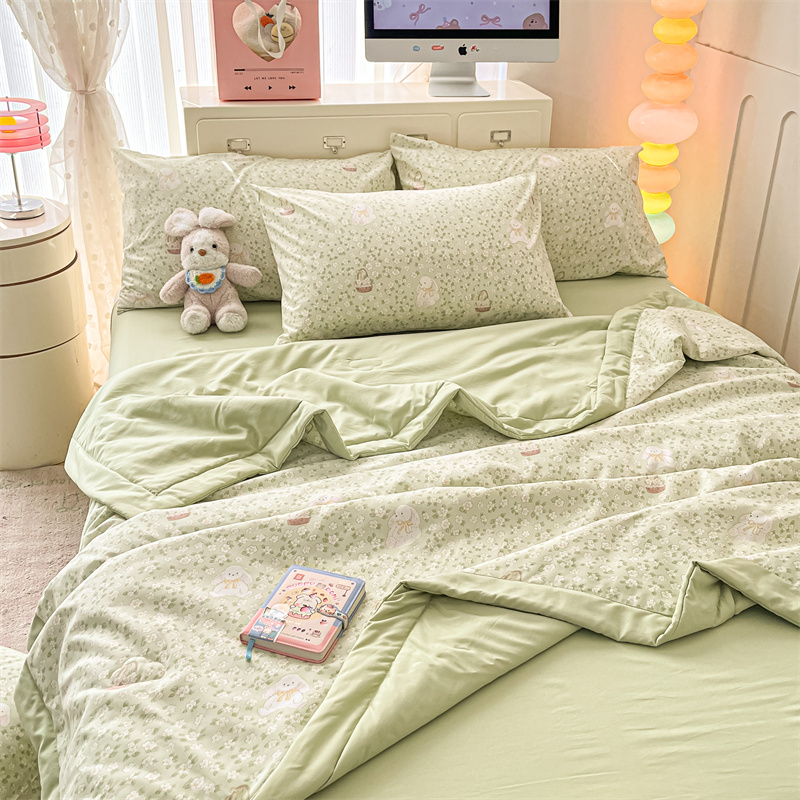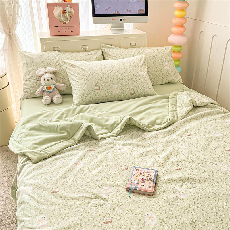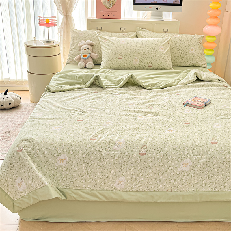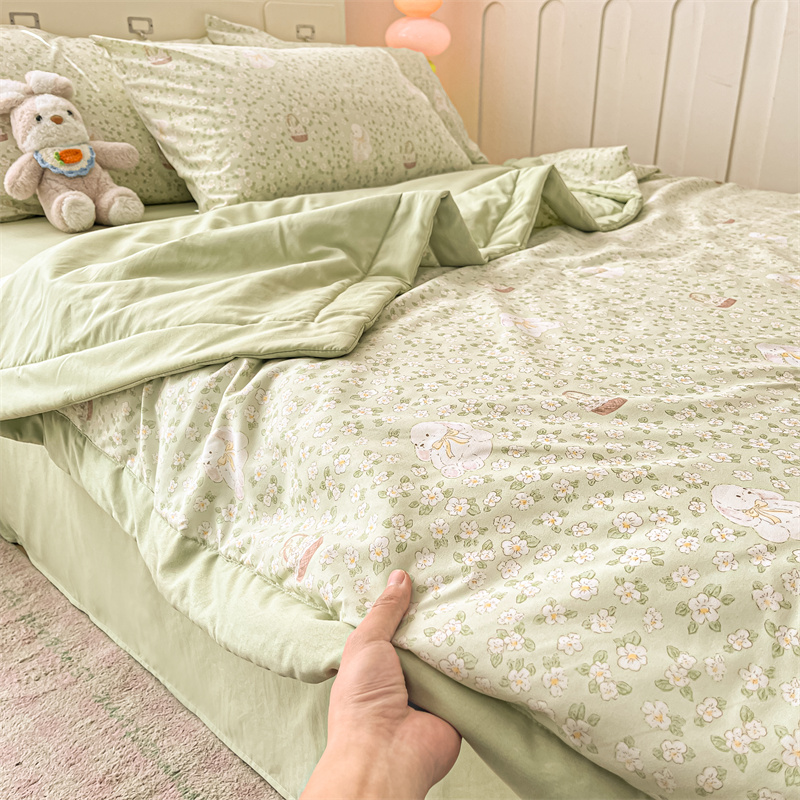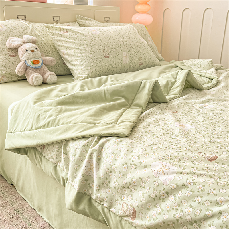 商品名称:美梦里 2025新款A类水洗棉棉花夏被 夏凉被空调被 花丛小兔
