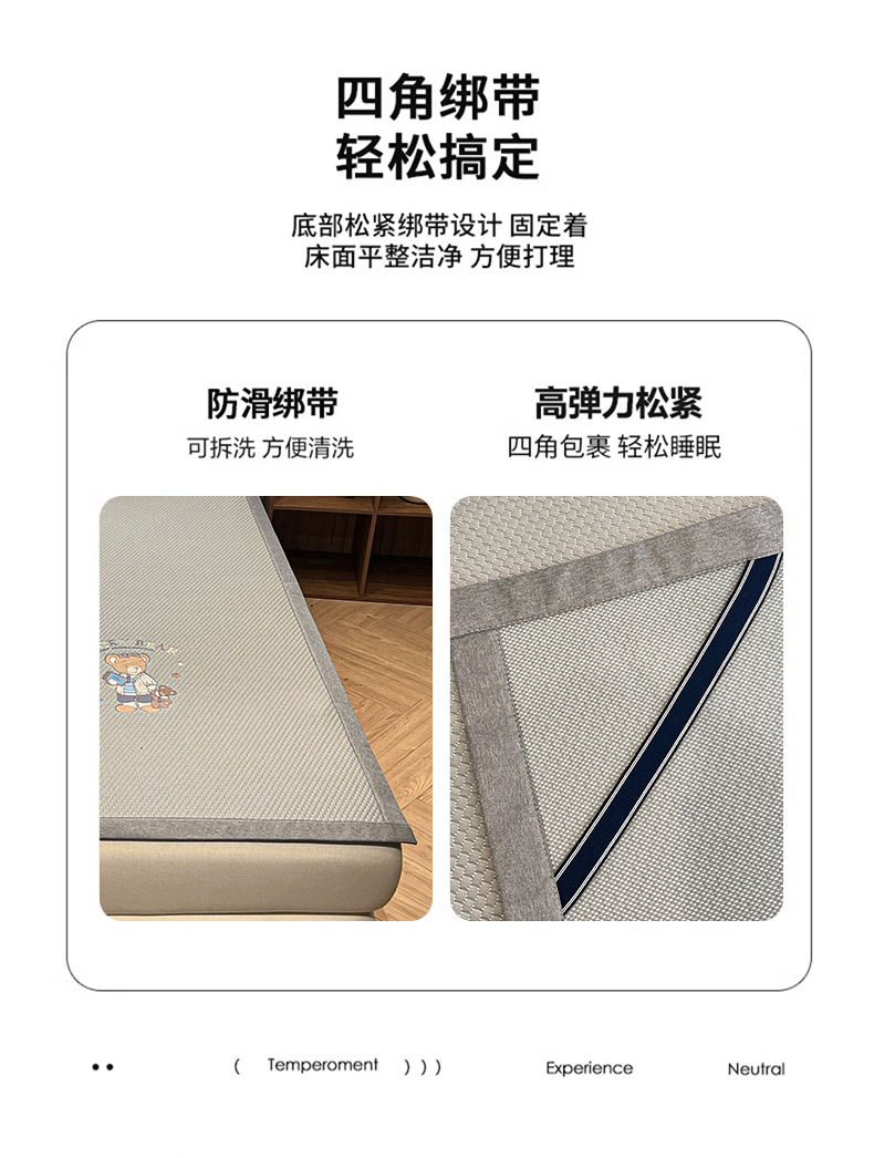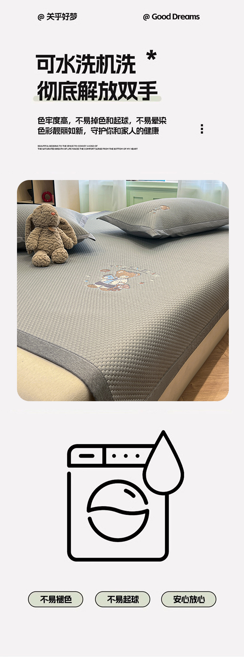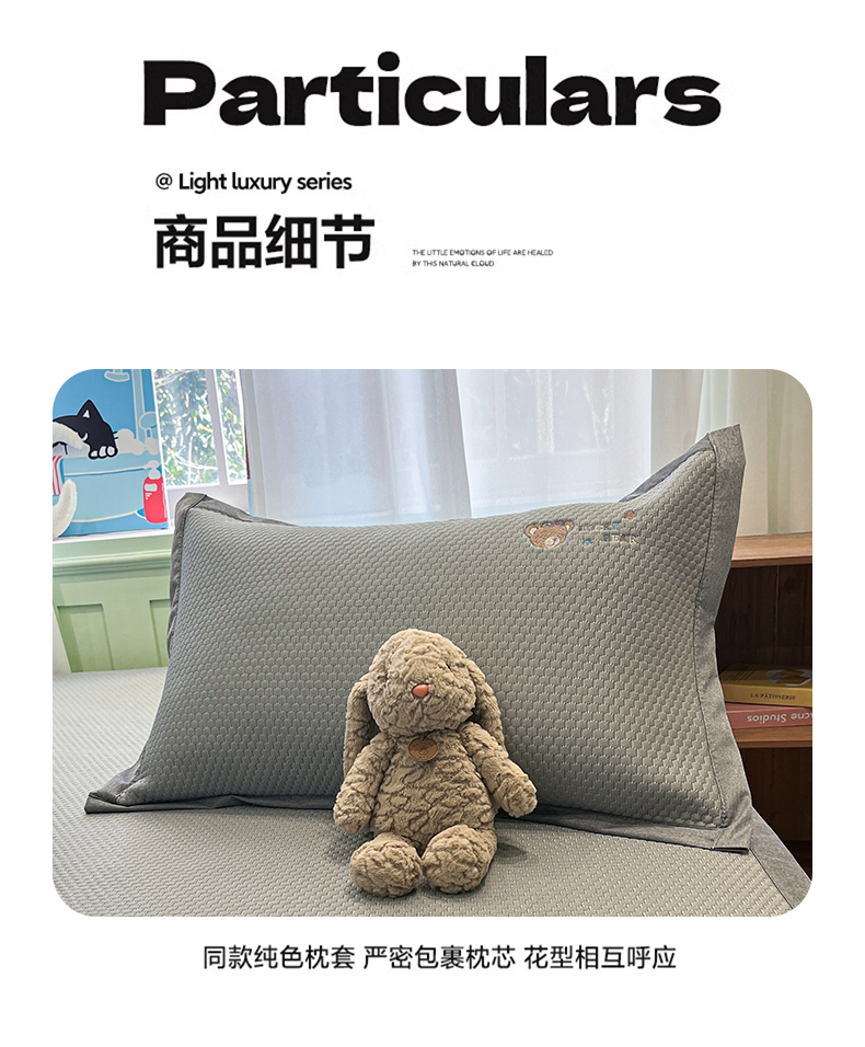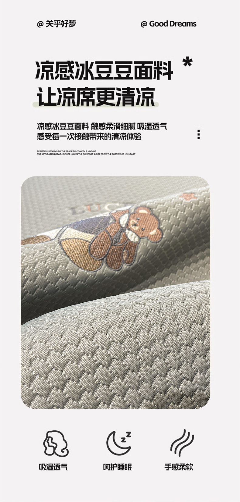 启程家纺 2025春夏新款冰豆豆凉席刺绣款复合三明治三件套 熊仔宝贝-灰