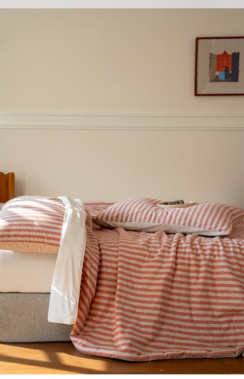 (总)华超针织 2025新款亲肤舒适全棉纯棉针织五件套四件套,奶糖+樱桃,杏粉+花田,杏灰+玫瑰